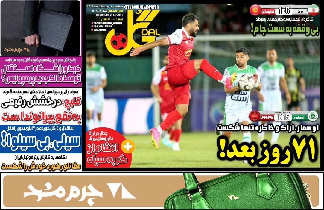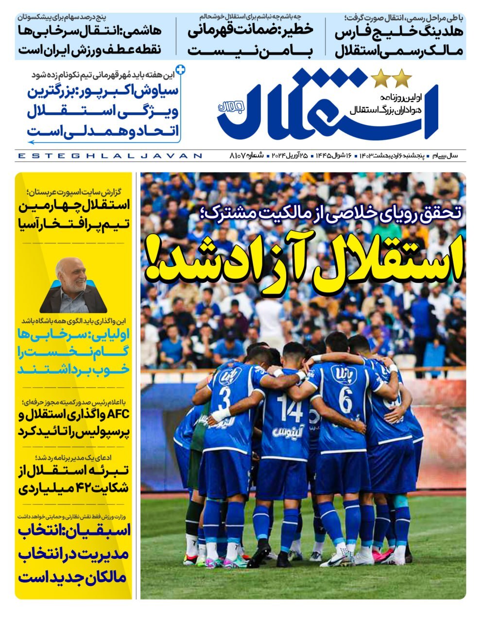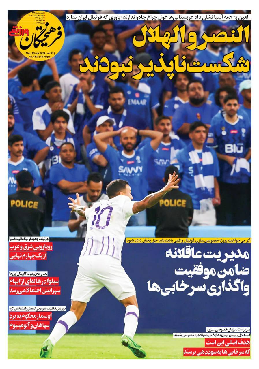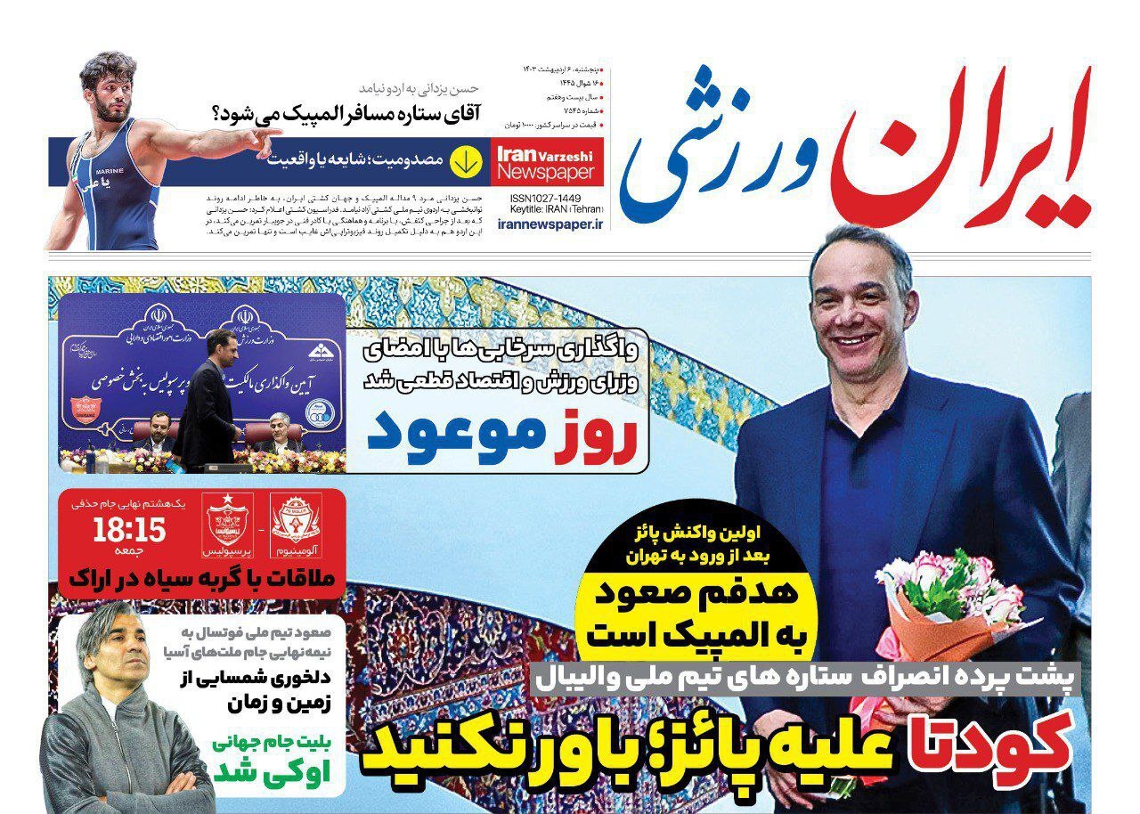 روزنامه‌های ورزشی پنجشنبه ۶ اردیبهشت ۱۴۰۳