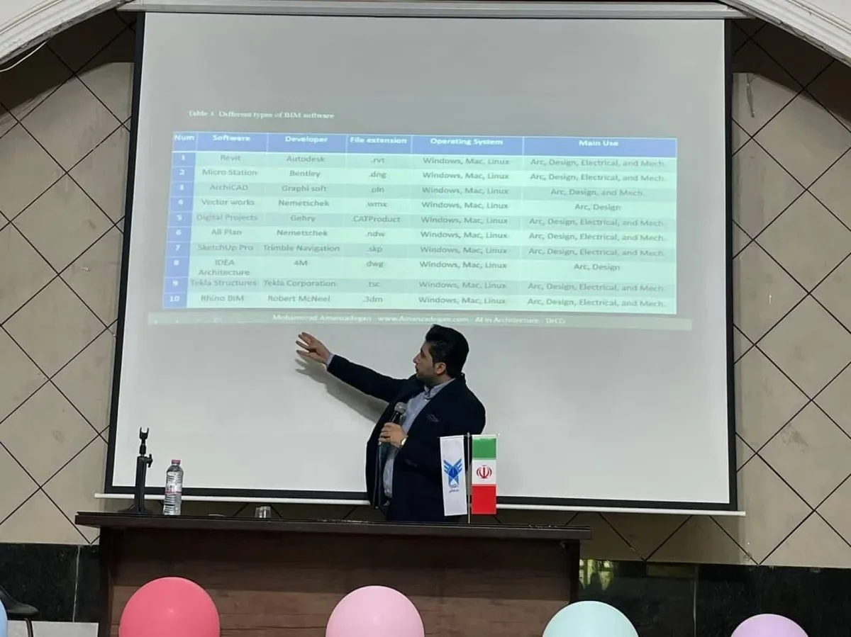 استاد گروه معماری دانشگاه آزاد اسلامی واحد لارستان به نقش هوش مصنوعی در BIM، کاربرد هوش مصنوعی در زمینههای مختلف معماری و چالشها و چشماندازهای استفاده از هوش مصنوعی در معماری اشاره کرد.