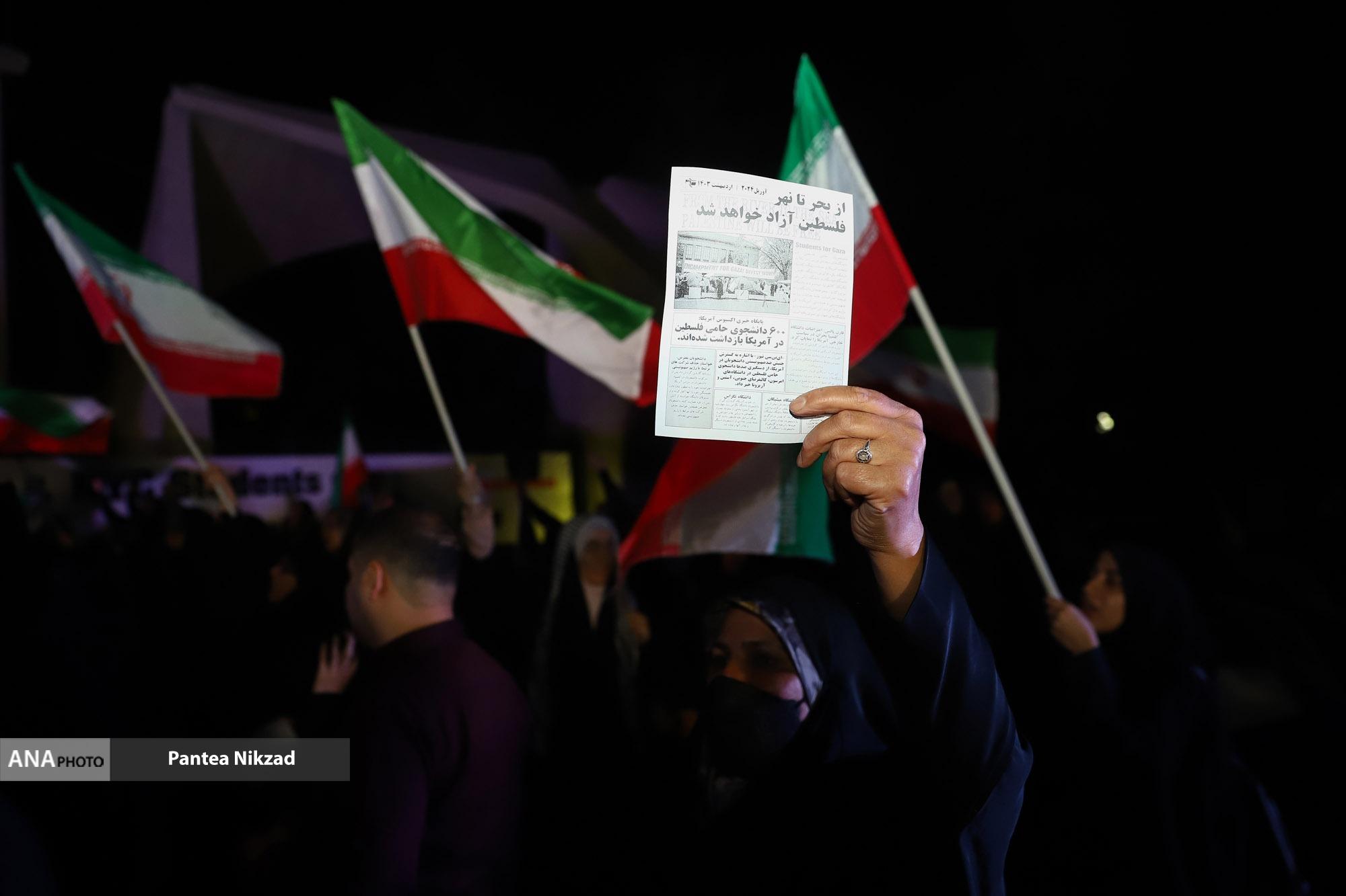 تجمع همبستگی با دانشجویان آمریکایی حامی فلسطین در تهران