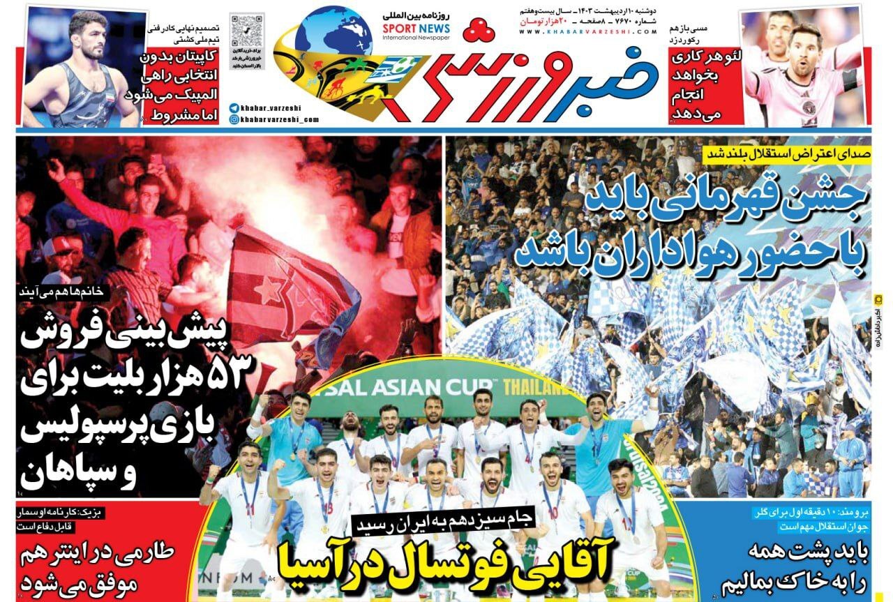 روزنامههای ورزشی دوشنبه ۱۰ اردیبهشت ۱۴۰۳