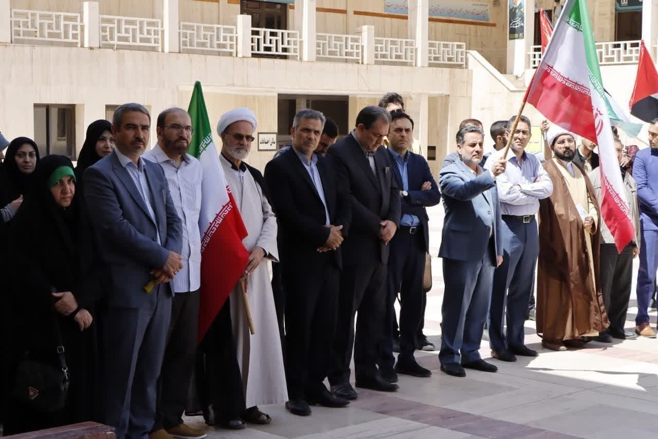 جامعه دانشگاهیان دانشگاه آزاد کاشمر اعم ازدانشجویان، استادان، کارکنان و دانشآموزان مدارس سما همصدا با آحاد دانشگاهیان کشور در جوار مزار شهدای گمنام این واحد دانشگاهی تجمع کرده و حمایت خود را از مردم مظلوم فلسطین، غزه، جنبش بیدارگرانه، استادان و دانشجویان دانشگاههای آمریکا و اروپا اعلام کردند.