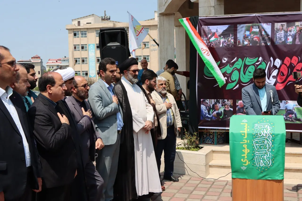 مسئول بسیج دانشجویی دانشگاه آزاد اسلامی واحد رشت تشریح کرد:، اما دانشجویان عدالت‌خواه و استادان پیشگام آزادی در آمریکا و اروپا؛ پیام ما را دریافت کنید، از پای ننشینید، و باید بدانید رهایی هزینه دارد. ما دانشگاهیان ایران اسلامی به برکت خون شهیدان‌مان، آزادانه آرمان آزادی فلسطین را فریاد می‌زنیم؛ باشد که با ایستادگی و رادمردی، همپای همه آزادی‌خواهان جهان، سرافرازانه در جشن آزادی، شکرگزار باری تعالی باشیم، به یکدیگر سلام دهیم و به ارواح شهدای مقاومت درود فرستیم.