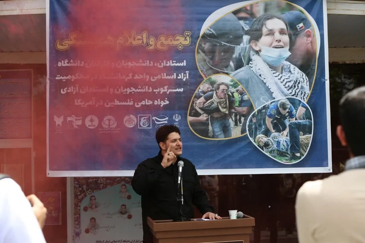دانشجویان و استادان دانشگاه آزاد اسلامی در حمایت از خیزش سراسری دانشجویان آمریکا و اروپا علیه جنایت‌های رژیم صهیونیستی علیه مردم ستمدیده فلسطین، تظاهرات کردند و شعارهای «مرگ بر اسرائیل» و «مرگ بر آمریکا» سر دادند.