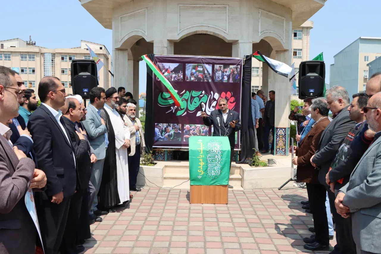 رئیس دانشگاه آزاد اسلامی استان خراسان‌رضوی در این مراسم با اشاره به فرمایش مقام معظم رهبری گفت: قضیه فلسطین و ظلم و ستمی که امروز بر غزه و مردم مظلوم این منطقه روا داشته می‌شود لکه ننگی بر دامن بشریت است و خیلی متأسفیم در چنین زمانی واقع شده‌ایم که با وجود همه ادعا‌های حقوق بشری و مهد تمدنی و آزادی بیان آمریکا، اتفاقاتی در دانشگاه‌های آمریکا در حال رخ دادن است که همه این ادعا‌ها را زیرسؤال می‌برد و بشریت امروز شاهد رسوایی آمریکاست.