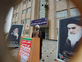 تعدادی از دانشجویان و استادان دانشگاه آزاد اسلامی واحد خاش در حمایت از خیزش دانشجویان دانشگاههای آمریکا و حمایت آنان از مردم مظلوم غزه، مقابل ساختمان آموزشی این دانشگاه نجمع کردند.