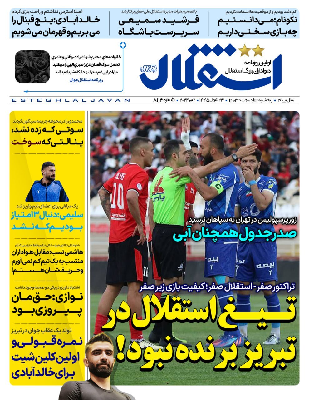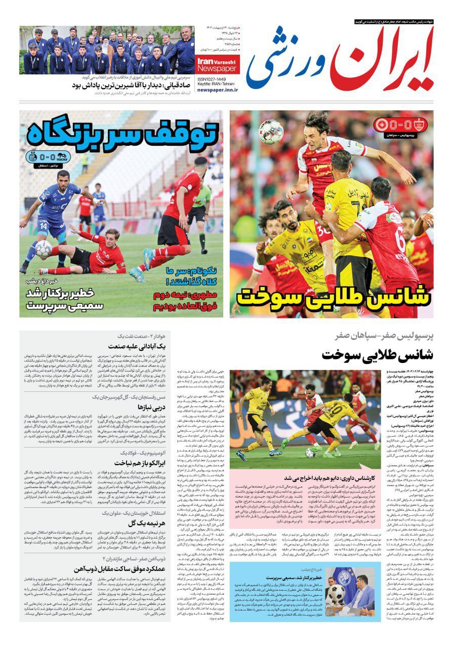 روزنامههای ورزشی پنجشنبه ۱۳ اردیبهشت ۱۴۰۳
