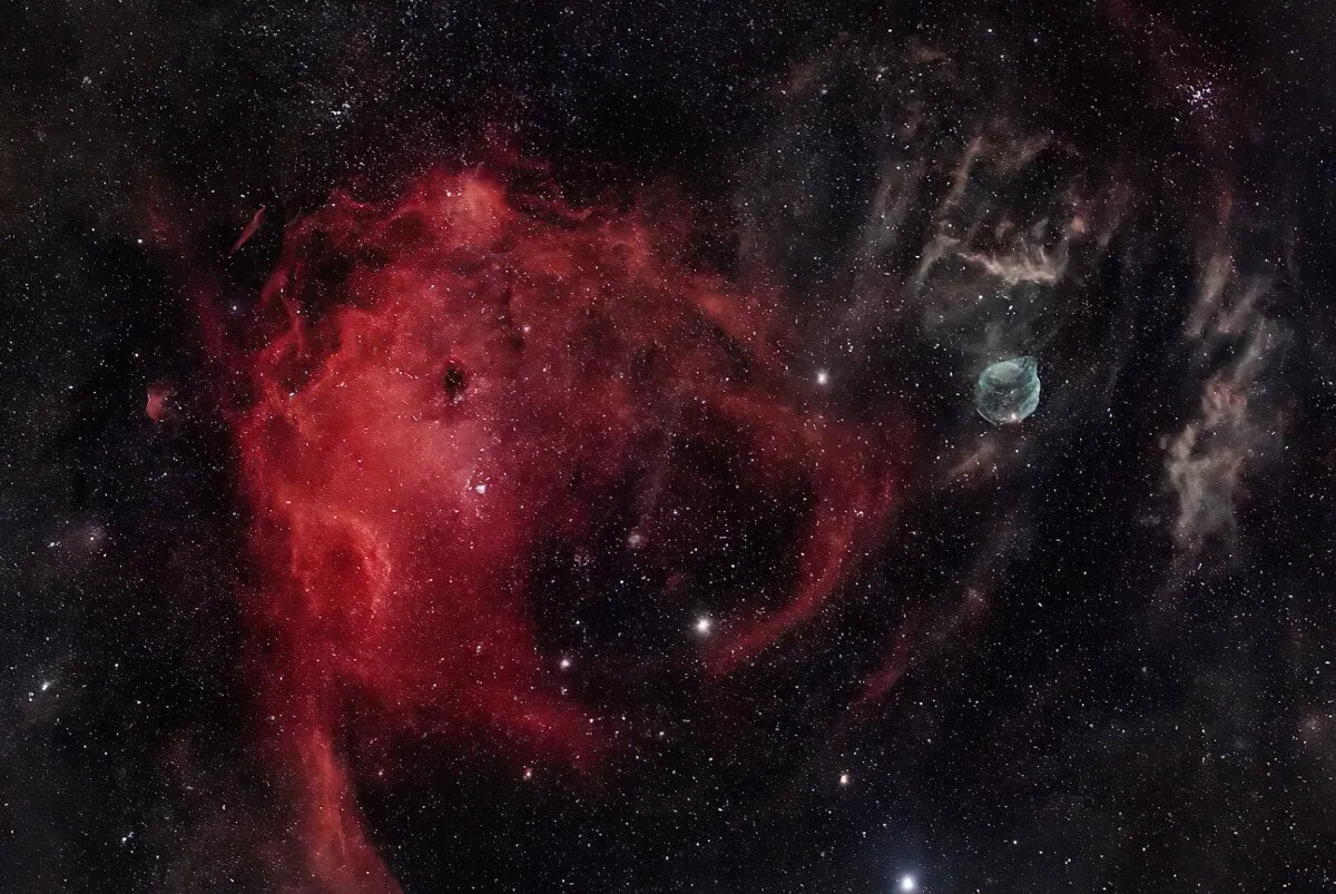 این عکس توسط الساندرو راوگنین (Alessandro Ravagnin) در نامیبیا به تاریخ فوریه و مارس 2024 با تجهیزات شامل لنز 135 میلی متری سامیانگ ثبت شد. این عکس صورت فلکی کانیس ماجور (Canis Major) را به تصویر میکشد. در این میدان گسترده بسیاری از اشیاء شناختهشده قابل مشاهده هستند: سیریوس، مرغ دریایی، کلاه ثور (Thor's helmet)، دلفین (Dolphin)، موزاییک M41 از 4 پانل ساخته شده با سامیانگ و ASI2400MC با فیلتر دوگانه باند باریک ثبت شده است.