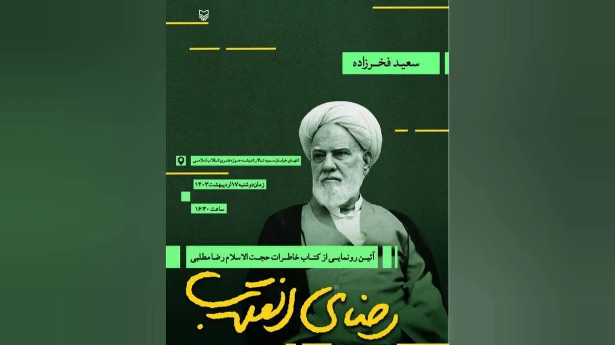 کتاب «رضای انقلاب» خاطرات حجت‌الاسلام والمسلمین «رضا مطلبی» امام جماعت مسجد ابوذر تهران، به قلم «حجت‌الاسلام سعید فخرزاده» رونمایی می‌شود.