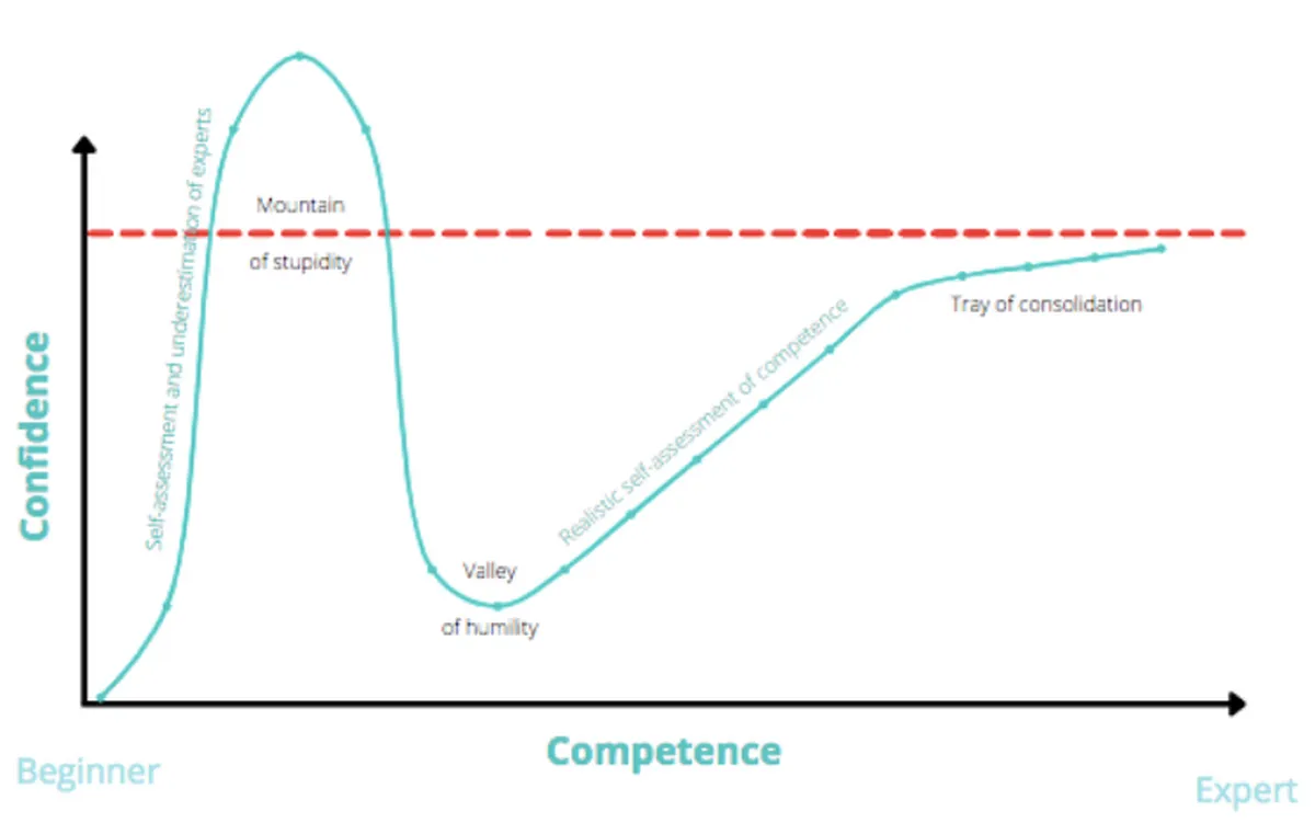 برخی پژوهشگران معتقدند این اتفاق به این دلیل رخ میدهد که افراد چون در هیچ رشتهای مهارت و تخصصی ندارند، آنگاه با کسب کمترین میزان دانش ممکن، خیال میکنند که بر تمامی جنبه های آن حوزه مسلط شدهاند. آنها صرفاً زمانی از این خیال باطل خارج میشوند که مطالعات خود را در آن حوزه بیشتر کنند.