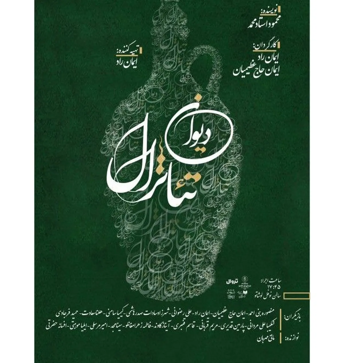 به گزارش گروه فرهنگ و جامعه خبرگزاری علم و فناوری آنا، «دیوان تئاترال» نوشته محمود استادمحمد، به کارگردانی ایمان راد و ایمان حاج‌عظیمیان ۱۷ اردیبهشت تا ۲۵ خرداد، هر روز ساعت ۱۷:۴۵ به مدت ۷۰ دقیقه در عمارت نوفل‌لوشاتو اجرا می‌شود.