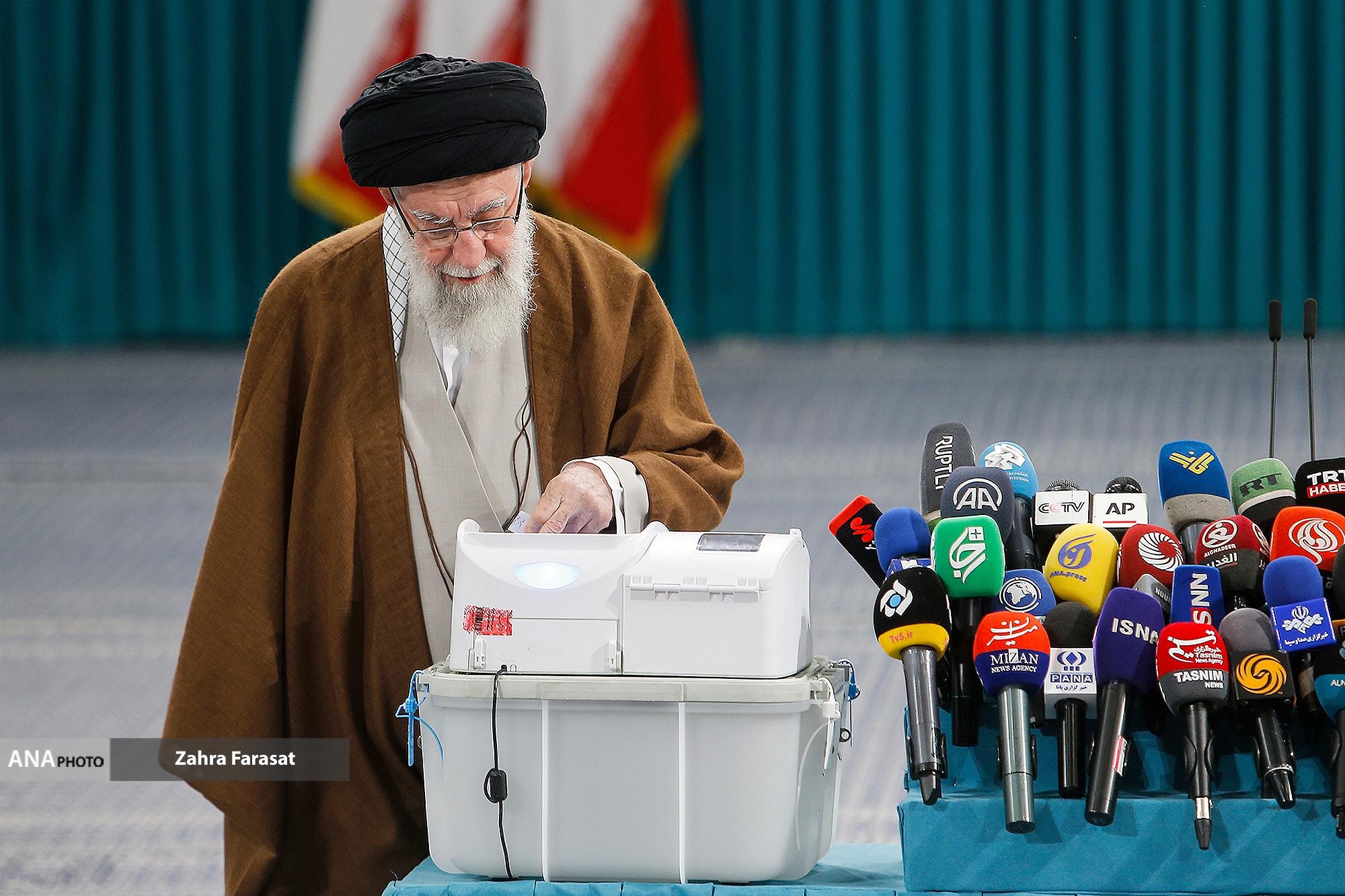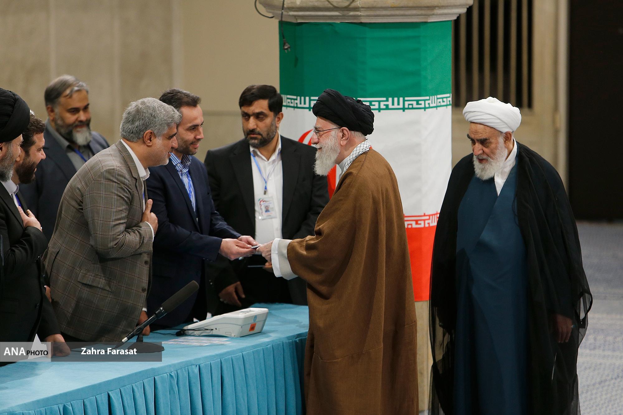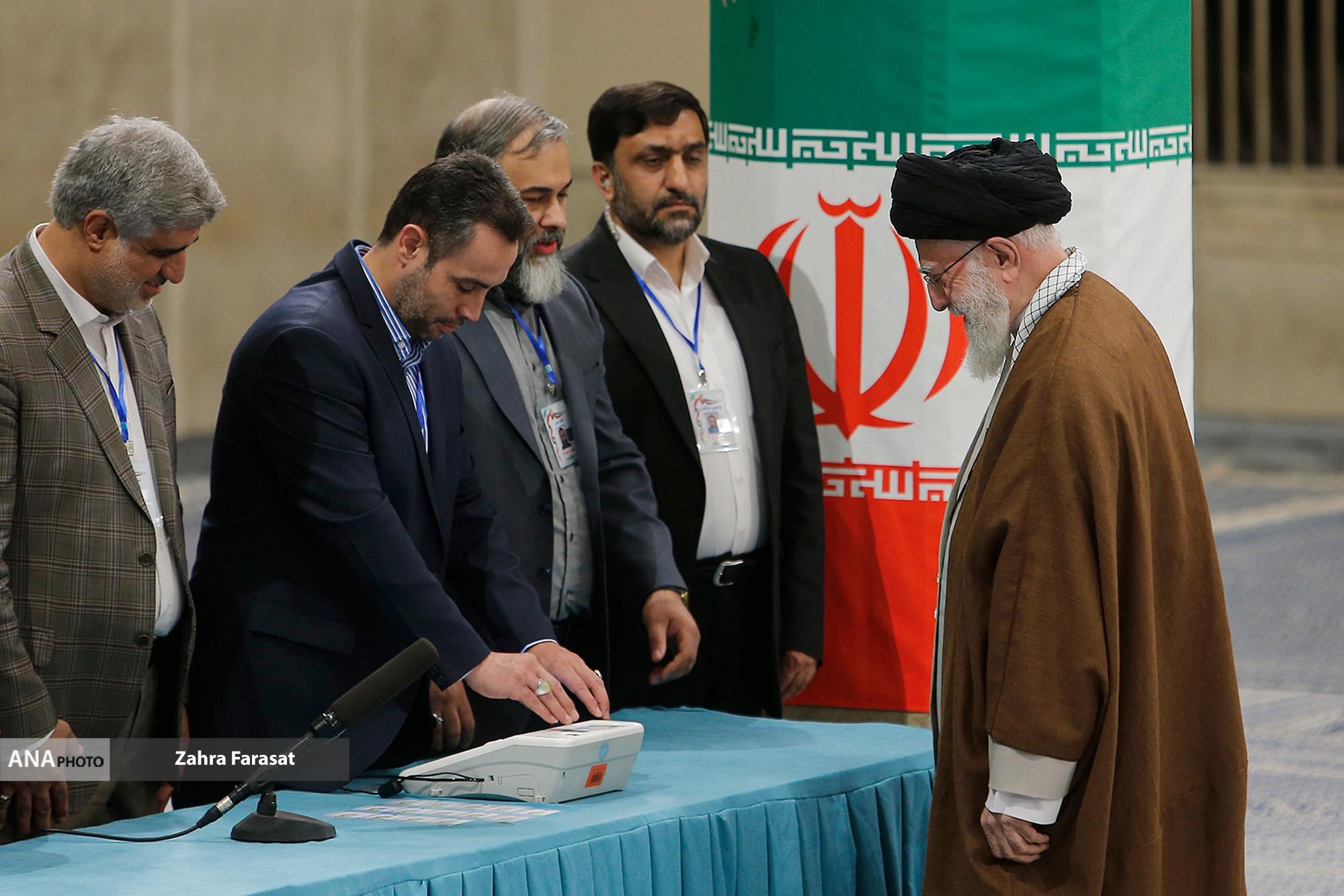 حضرت آیتالله خامنهای رهبر انقلاب اسلامی در اولین دقایق آغاز رأیگیری دور دوم دوازدهمین دورهی انتخابات مجلس شورای اسلامی با حضور در محل صندوق سیار ۱۱۰ در حسینیهی امام خمینی(ره)، آراء خود را به صندوق انداختند.