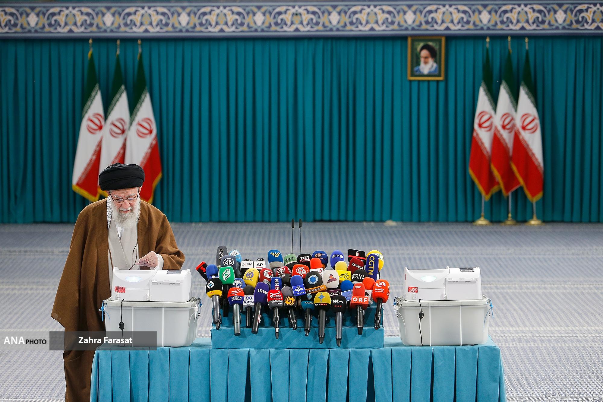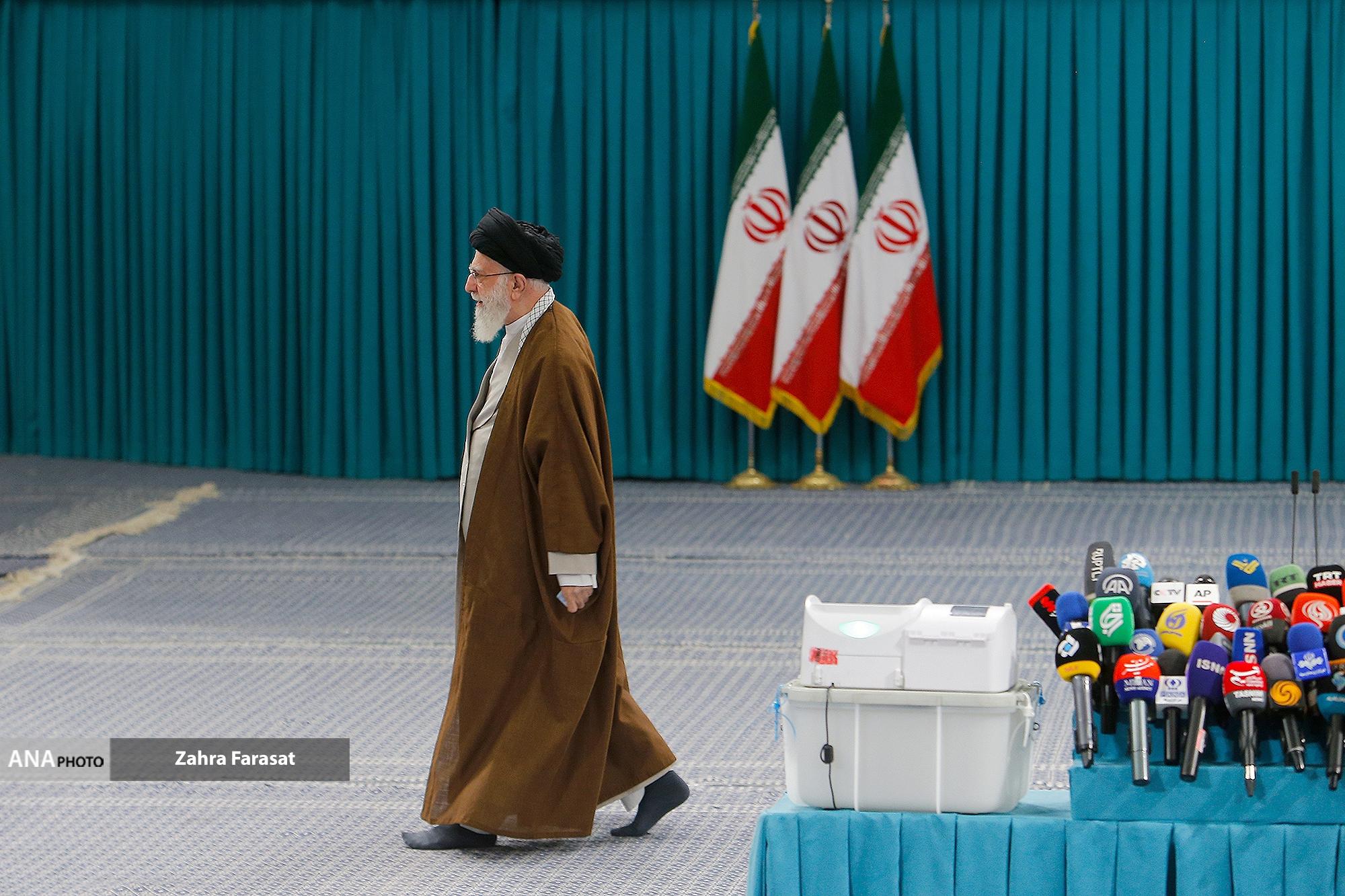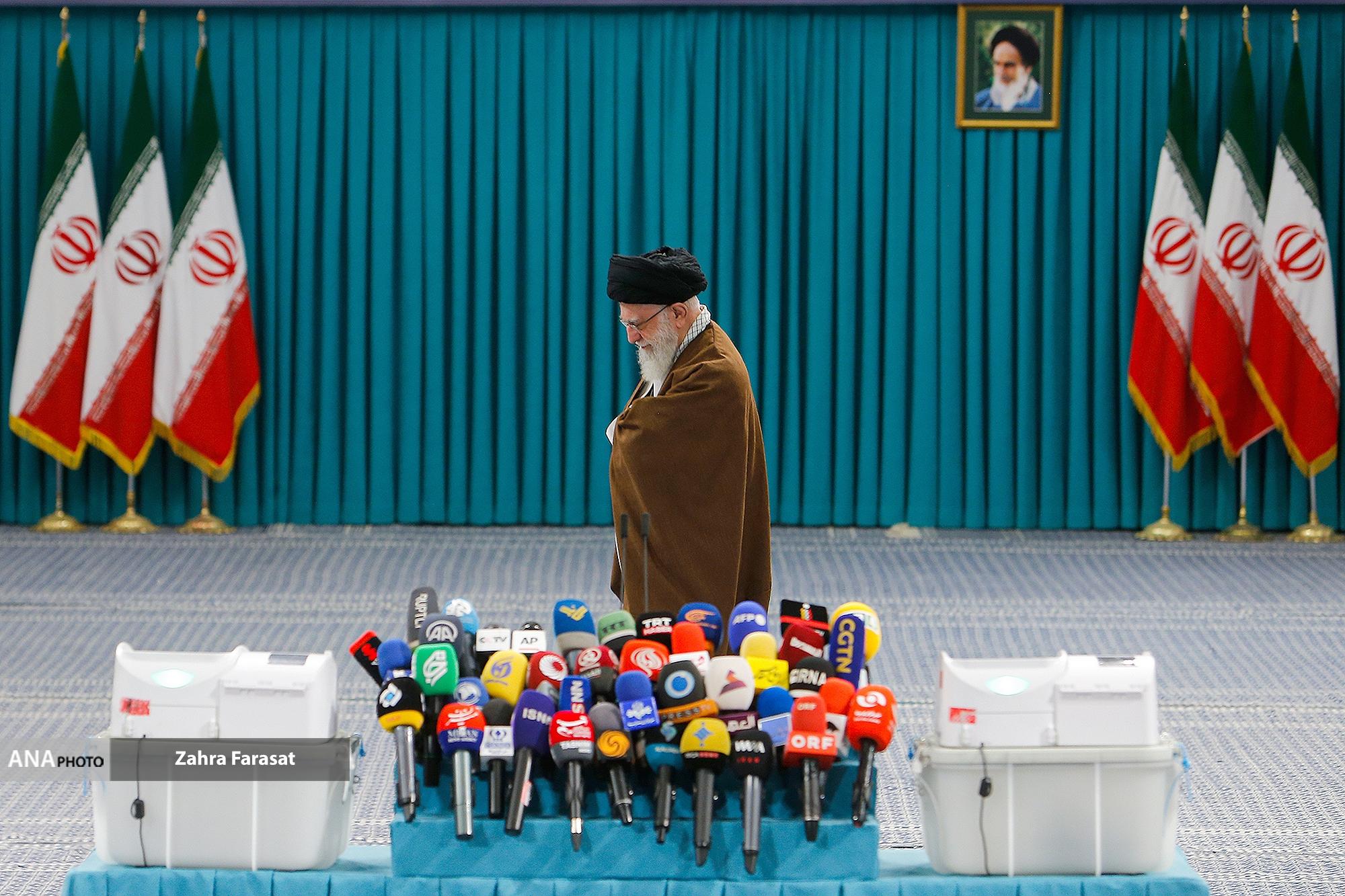 حضرت آیتالله خامنهای رهبر انقلاب اسلامی در اولین دقایق آغاز رأیگیری دور دوم دوازدهمین دورهی انتخابات مجلس شورای اسلامی با حضور در محل صندوق سیار ۱۱۰ در حسینیهی امام خمینی(ره)، آراء خود را به صندوق انداختند.