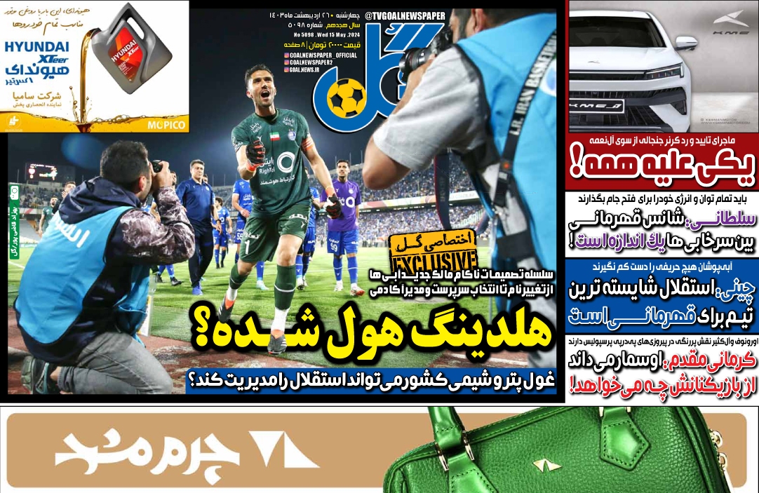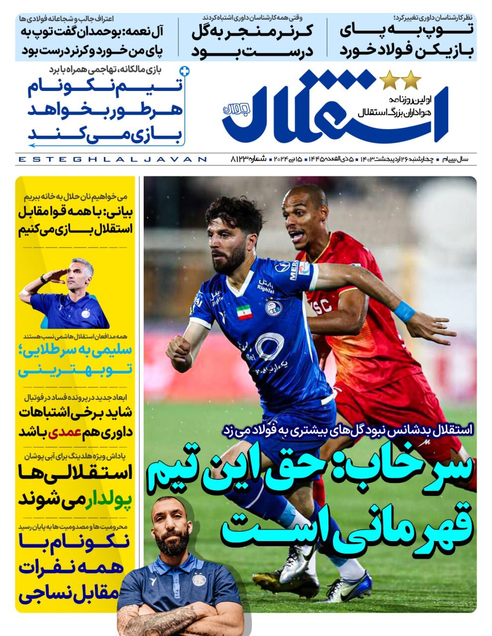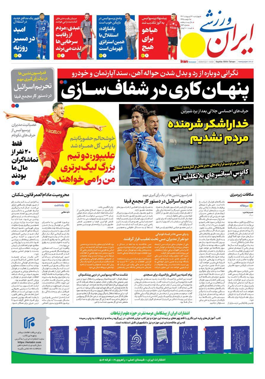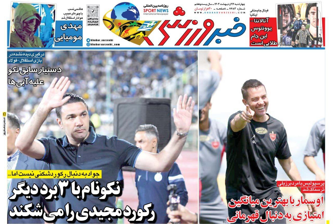 روزنامههای ورزشی چهارشنبه۲۶ اردیبهشت۱۴۰۳