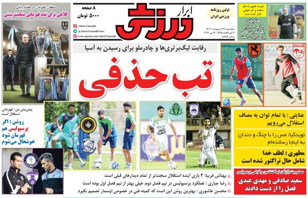 روزنامه‌های ورزشی پنجشنبه 27 اردیبهشت۱۴۰۳