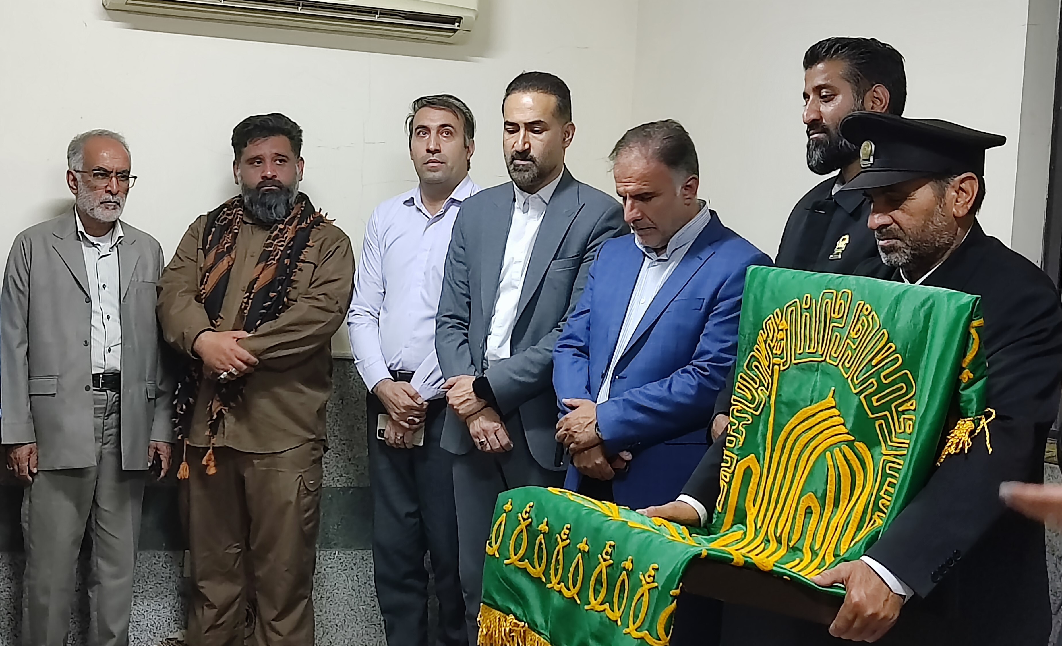 خادمان آستان قدس رضوی با پرچم متبرک حرم مطهر امام رضا علیهالسلام در دانشگاه آزاد اسلامی واحد کهنوج حضور یافتند.