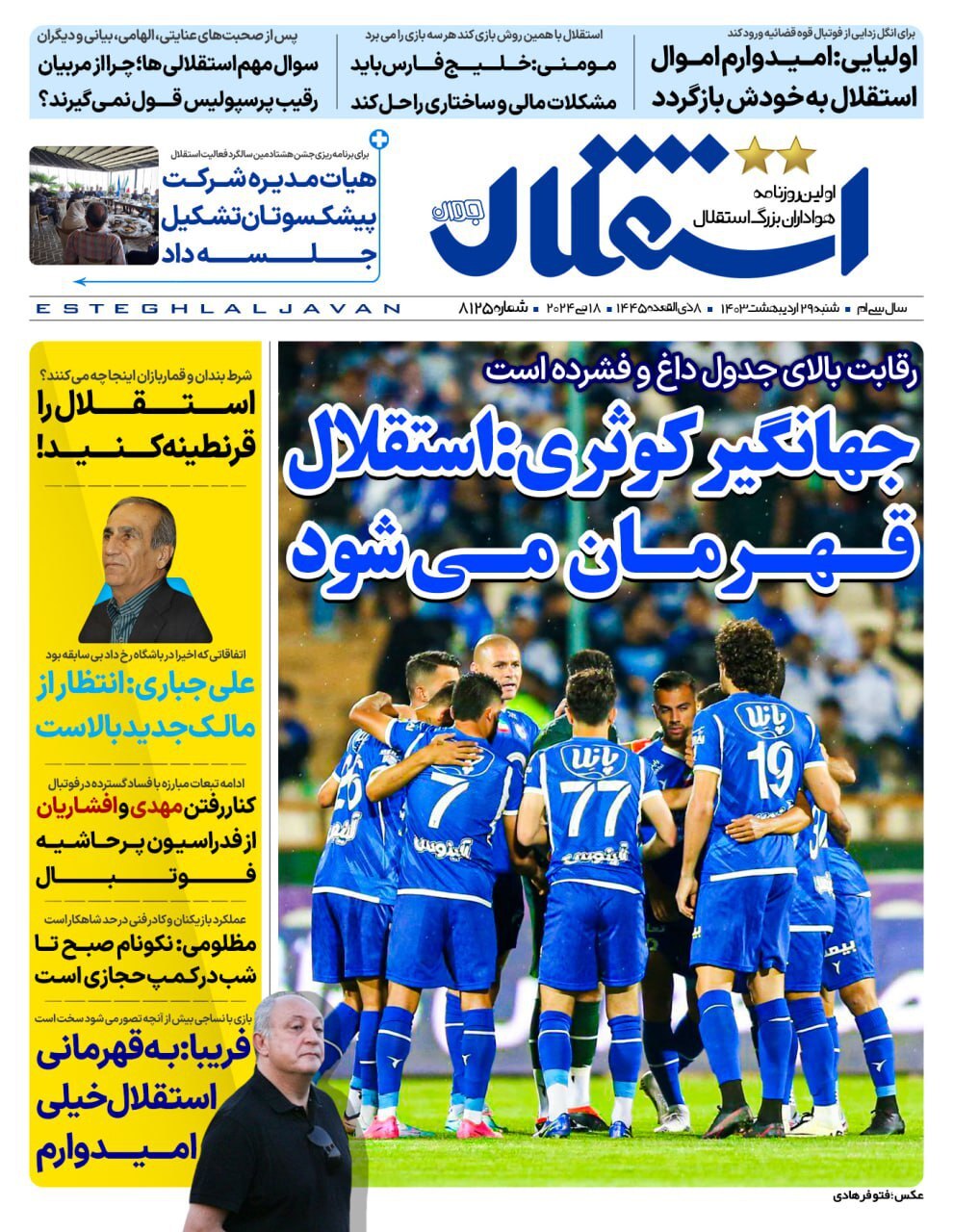 روزنامههای ورزشی شنبه ۲۹ اردیبهشت ۱۴۰۳