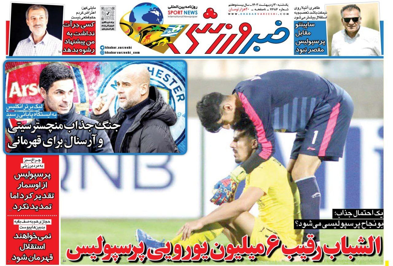 روزنامههای ورزشی یکشنبه ۳۰ اردیبهشت ۱۴۰۳