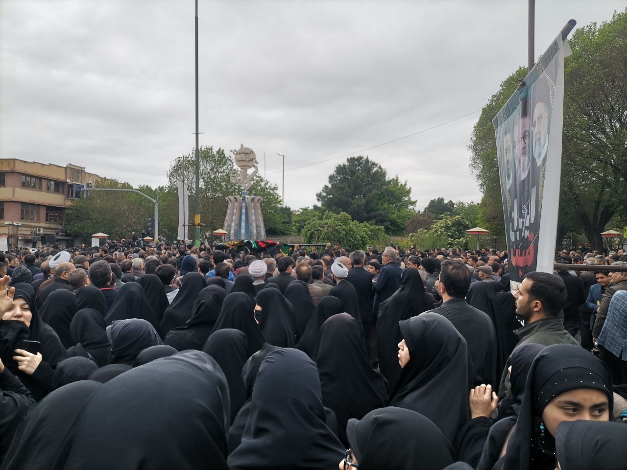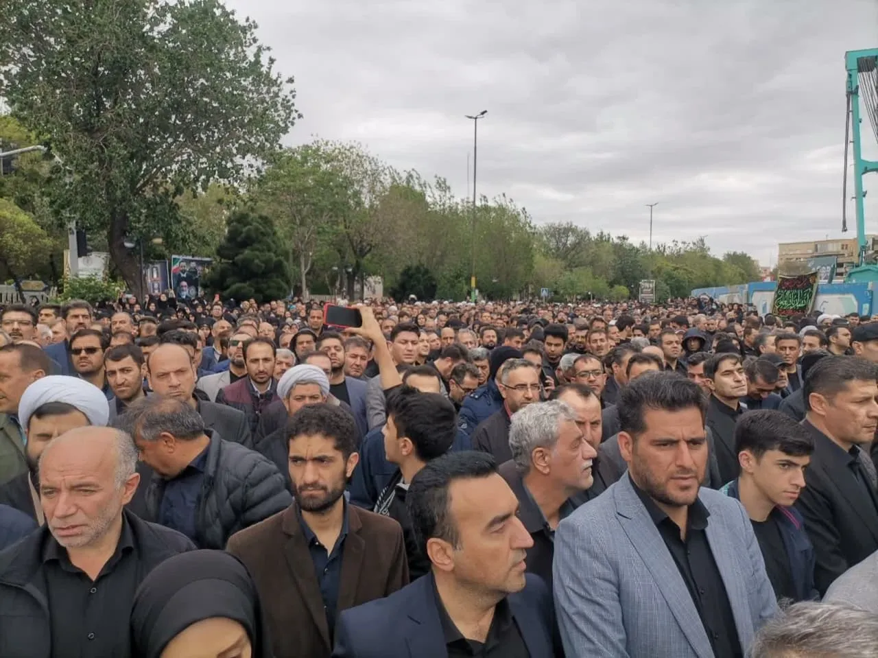 بعد از اتمام مراسم وداع با شهیدان خدمت در میدان شهدای تبریز، مهدی رسولی در سوگ شهدا مرثیهخوانی کرد و عزاداران در حال حرکت به سمت مصلی تبریز هستند تا پس از وداع پایانی، پیکر شهدا به تهران منتقل شود.