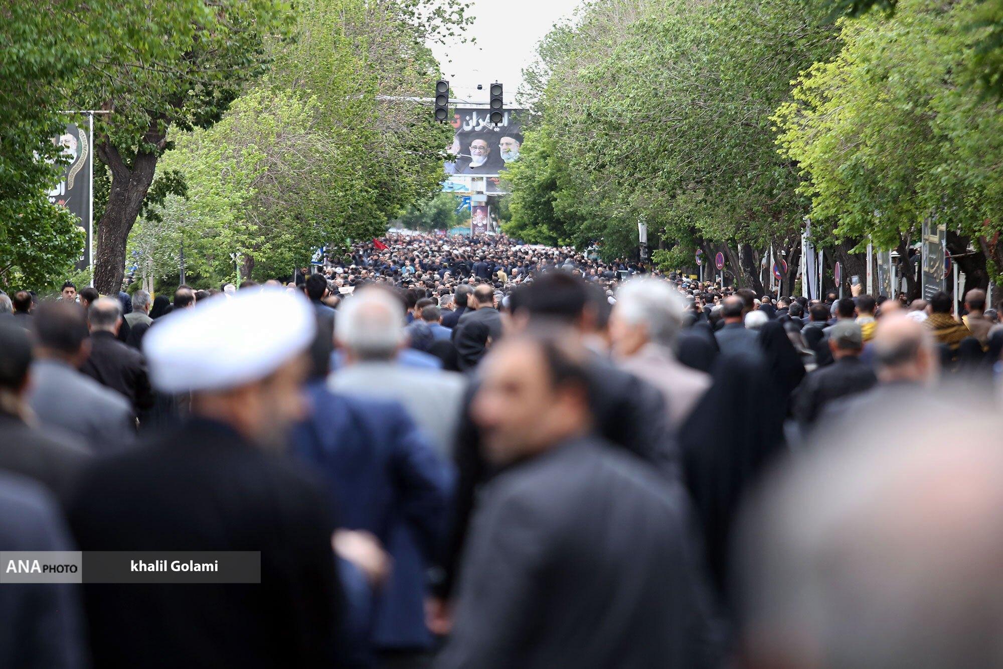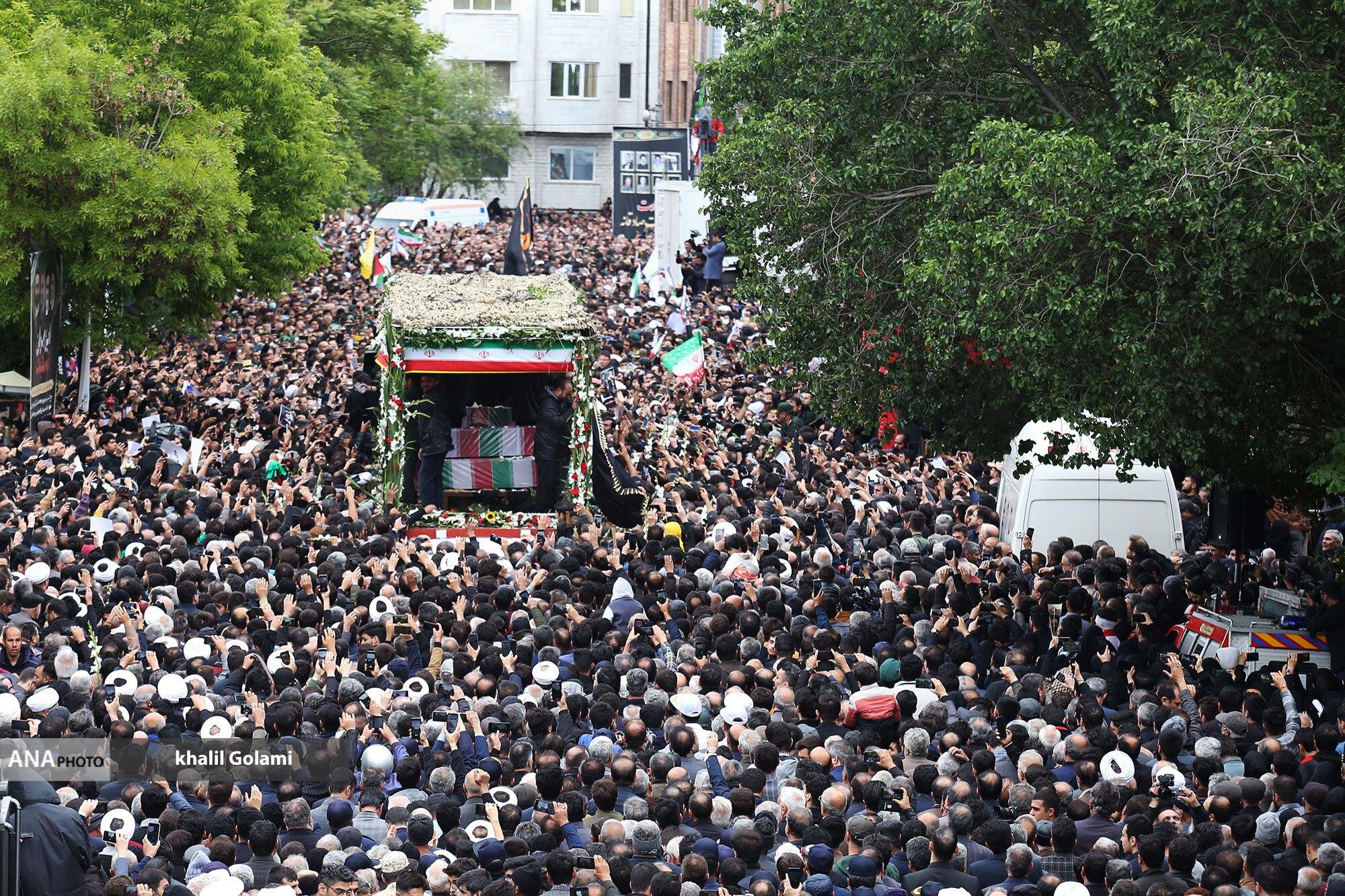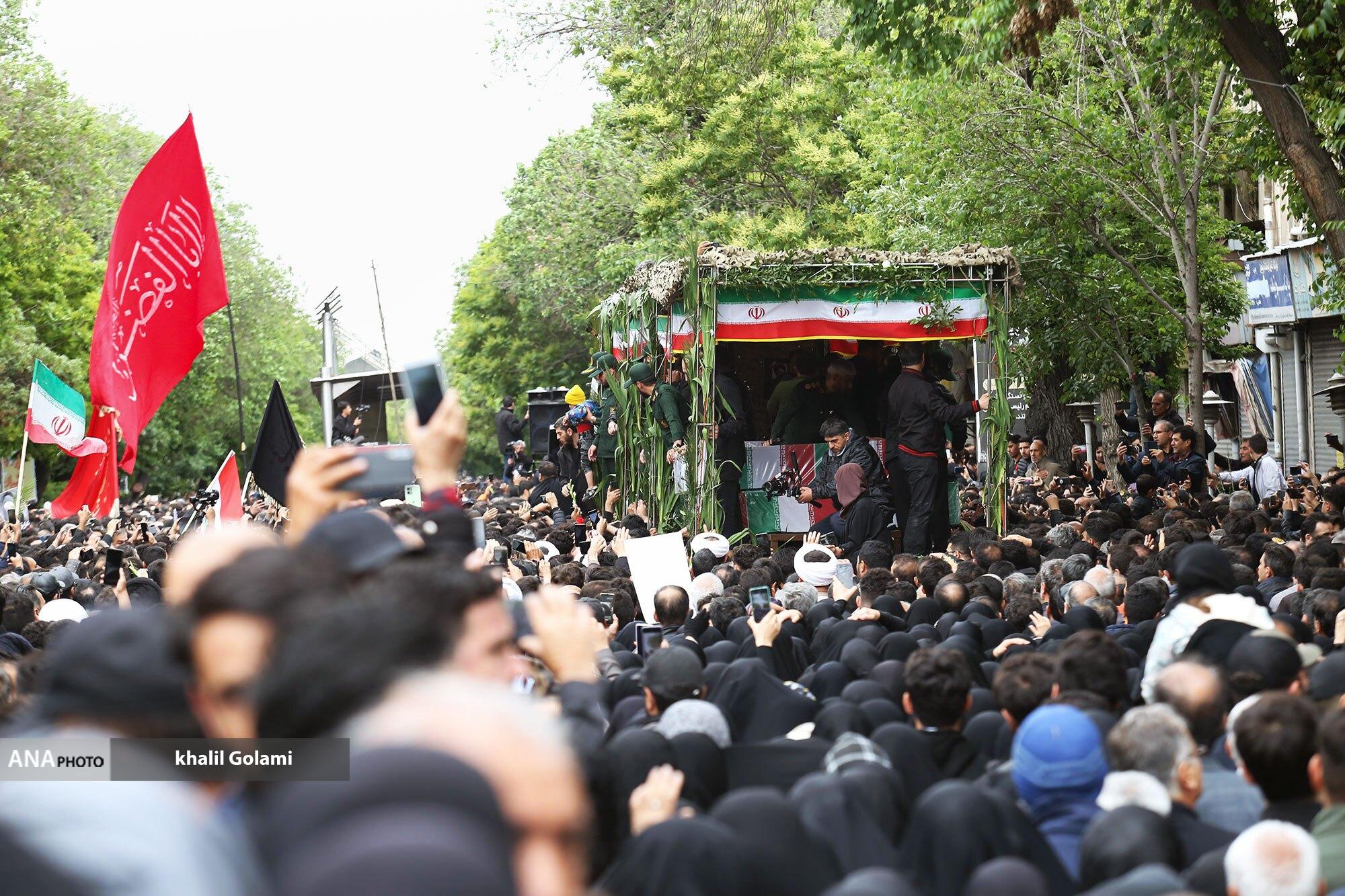 پیکرهای مطهر شهدای خدمت صبح امروز با حضور مردم سوگوار تبریز تشییع شد و تابوت‌های حامل شهید حجت الاسلام سید ابراهیم رئیسی و همراهانس به تهران منتقل شد.
