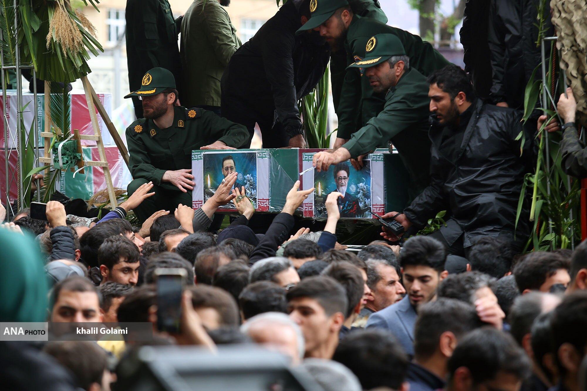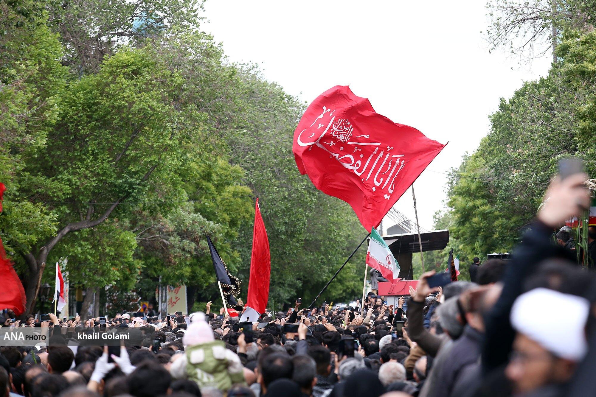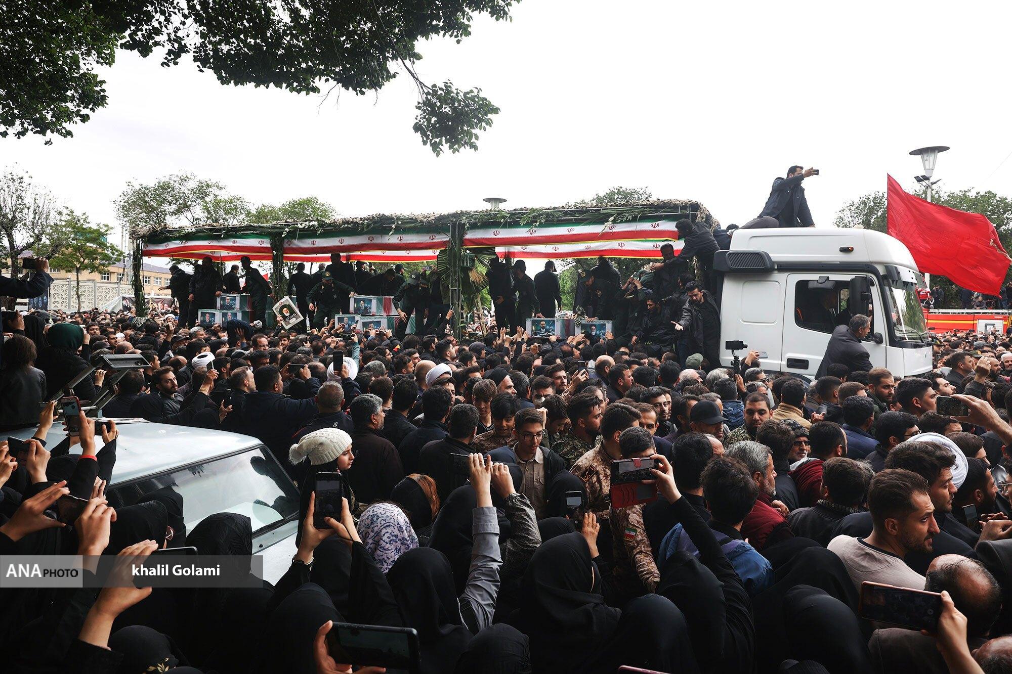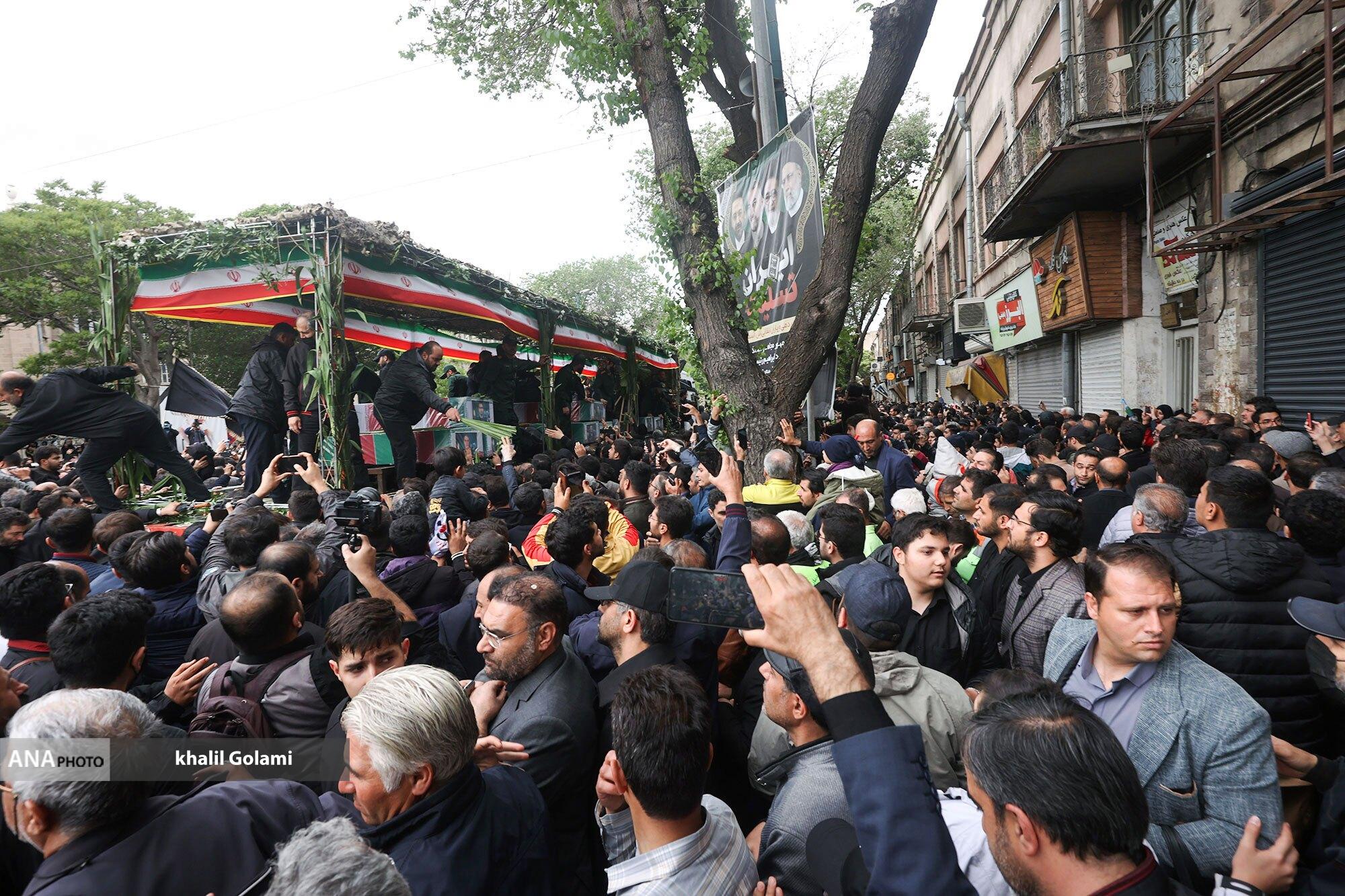 پیکرهای مطهر شهدای خدمت صبح امروز با حضور مردم سوگوار تبریز تشییع شد و تابوت‌های حامل شهید حجت الاسلام سید ابراهیم رئیسی و همراهانس به تهران منتقل شد.