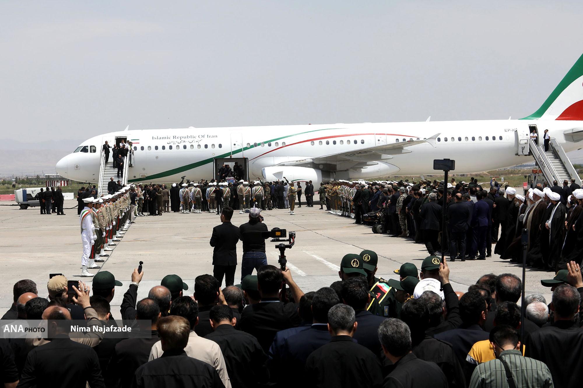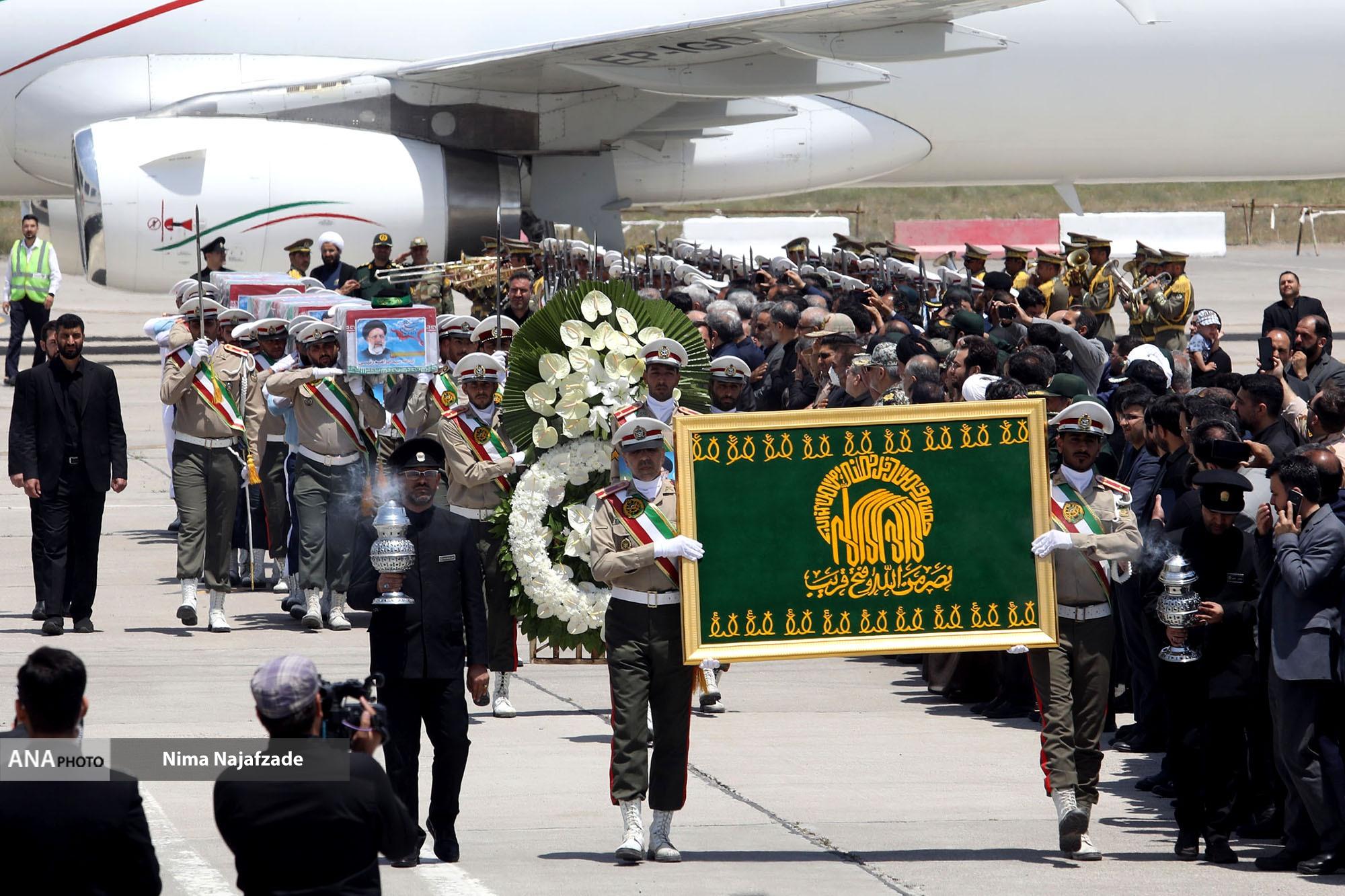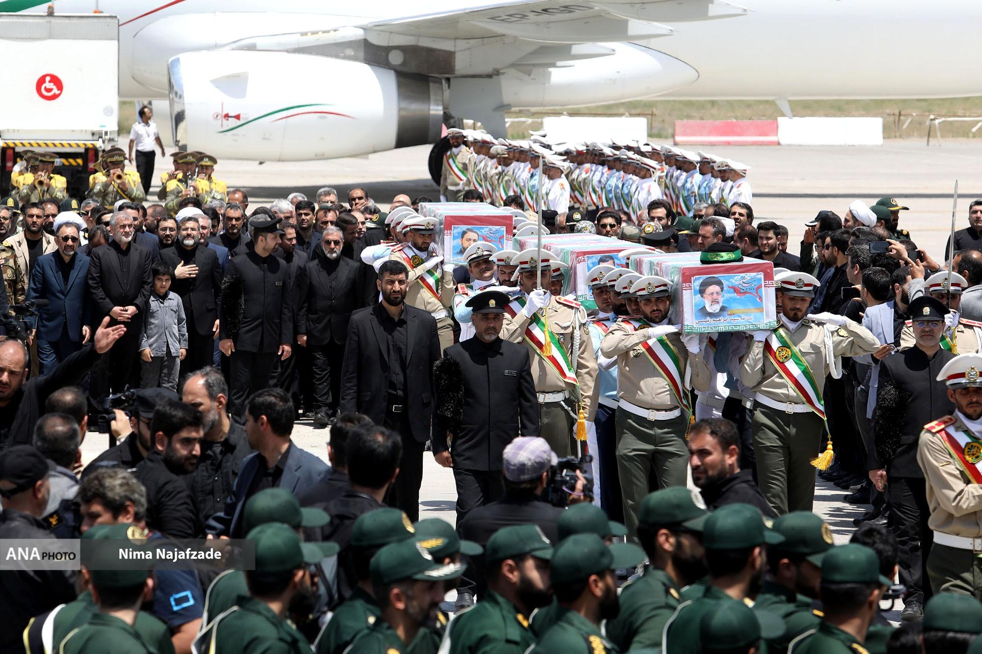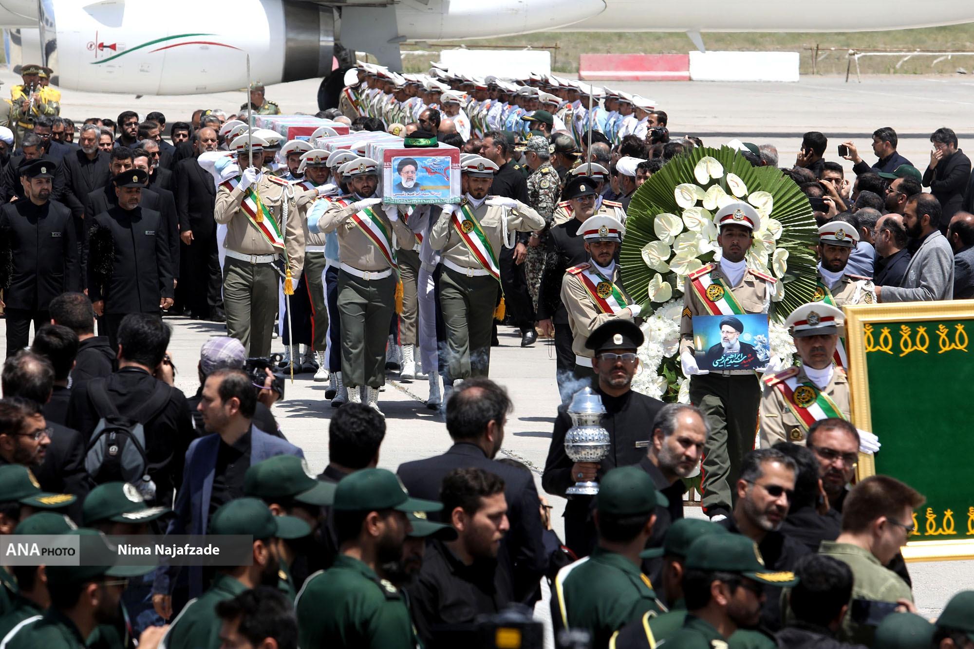 مراسم تشییع پیکر شهید حجت الاسلام ابراهیم رئیسی رئیس جمهور و همراهان در میان حزن و اندوه مردم و مسئولین وارد فرودگاه مشهد شد.