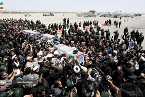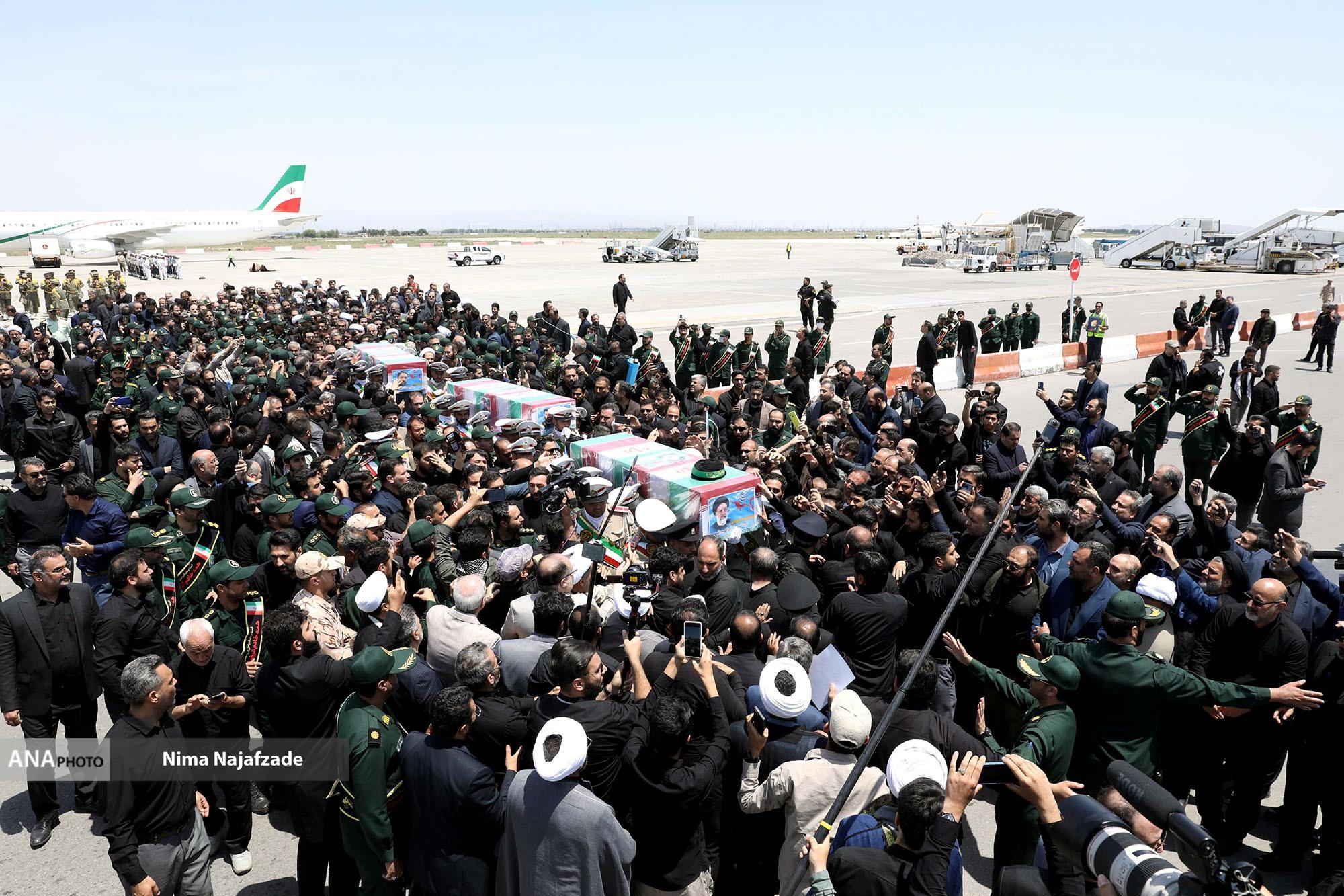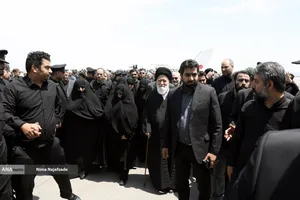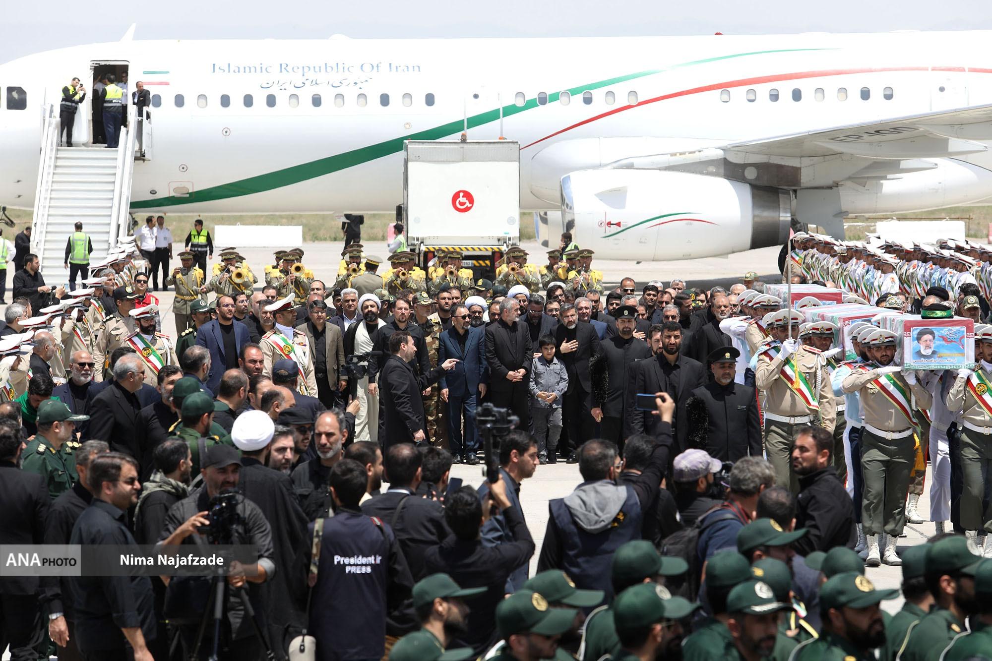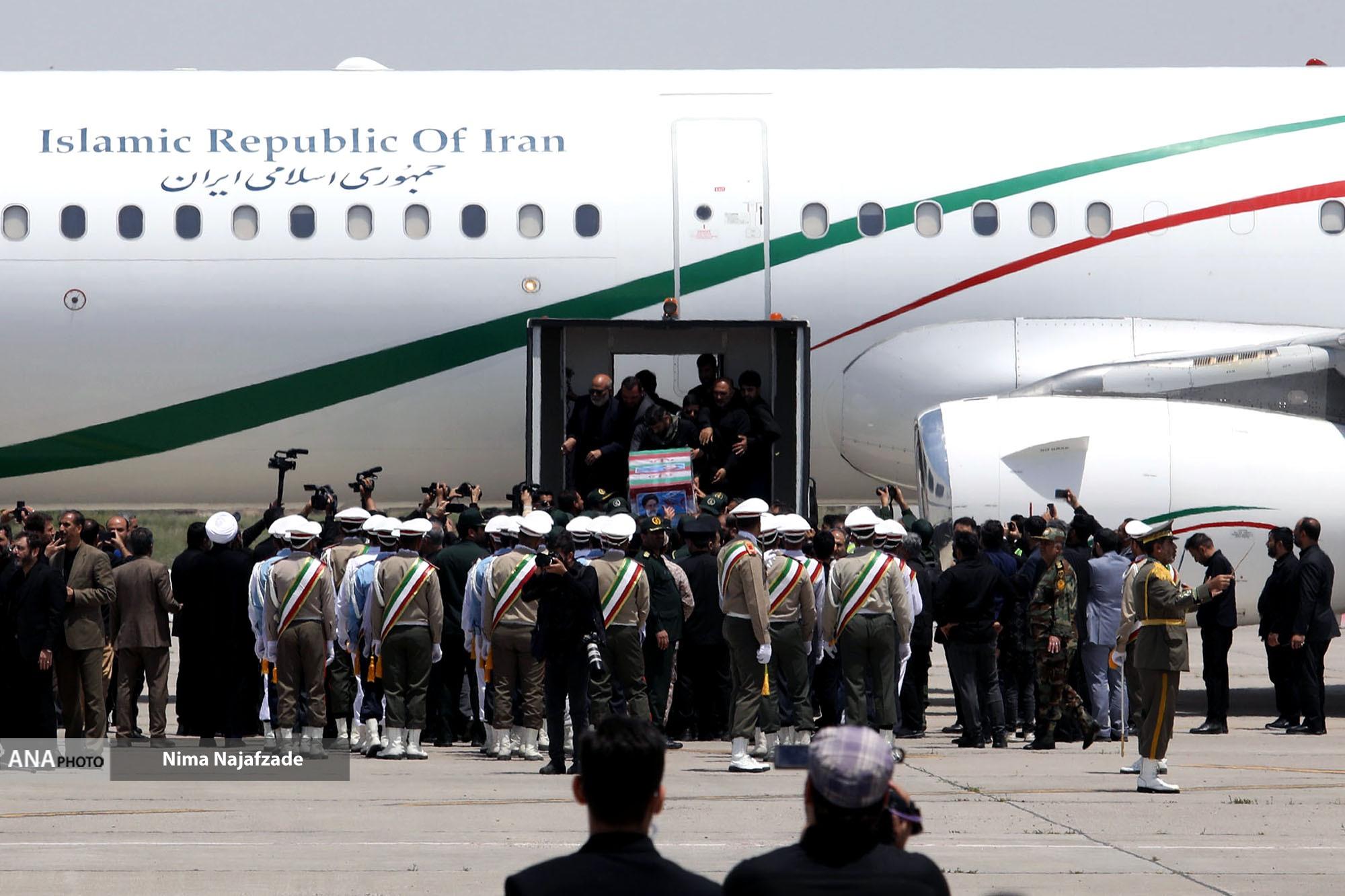 مراسم تشییع پیکر شهید حجت الاسلام ابراهیم رئیسی رئیس جمهور و همراهان در میان حزن و اندوه مردم و مسئولین وارد فرودگاه مشهد شد.