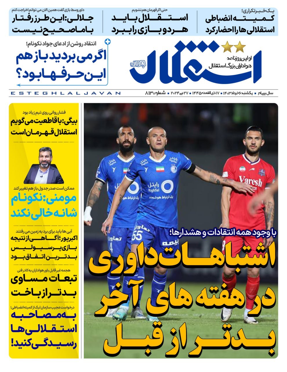 روزنامه‌های ورزشی یکشنبه ۶ خرداد ۱۴۰۳