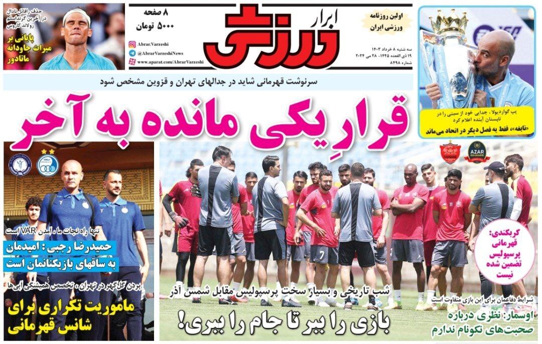 روزنامههای ورزشی سه شنبه ۸ خرداد ۱۴۰۳
