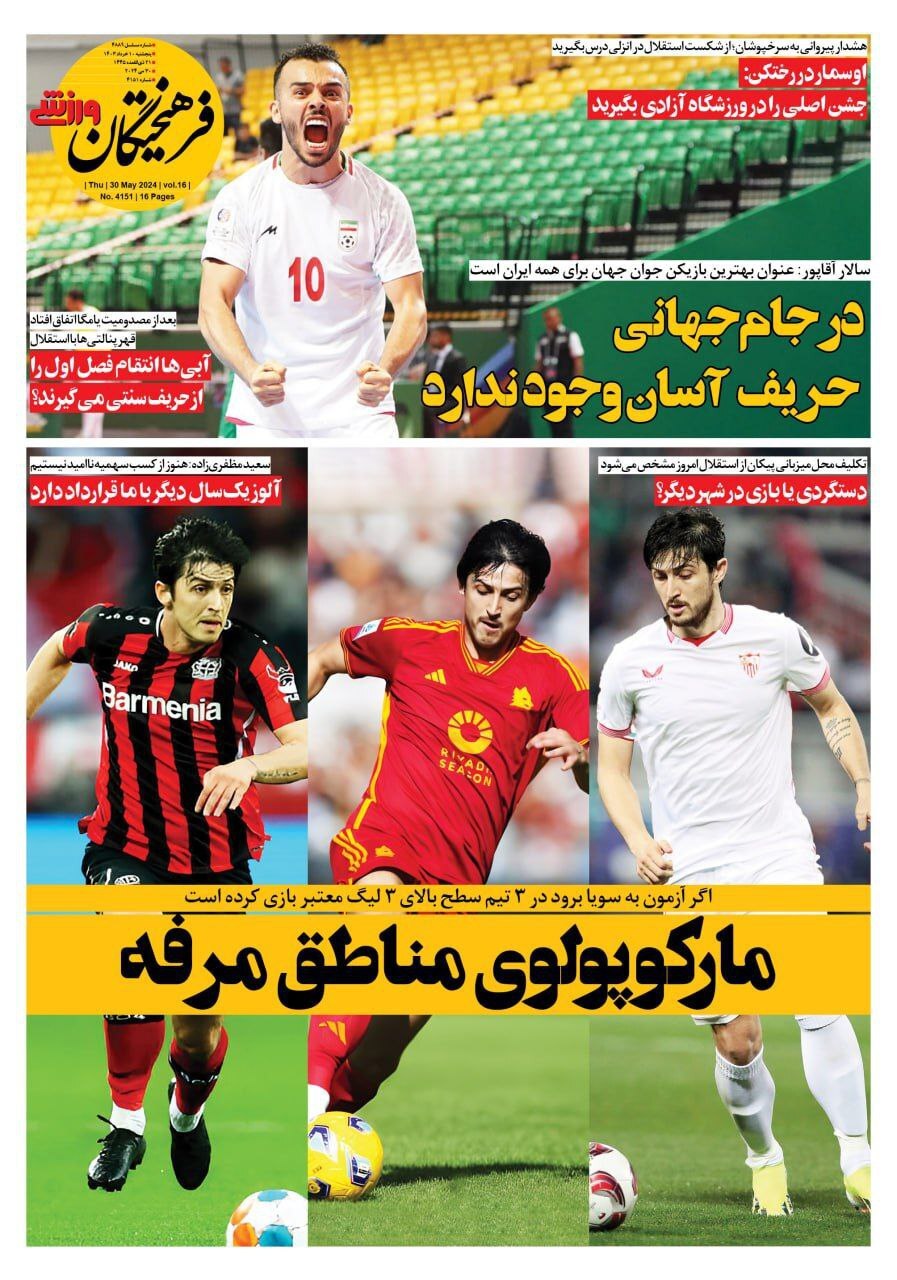 روزنامههای ورزشی پنجشنبه ۱۰ خرداد ۱۴۰۳