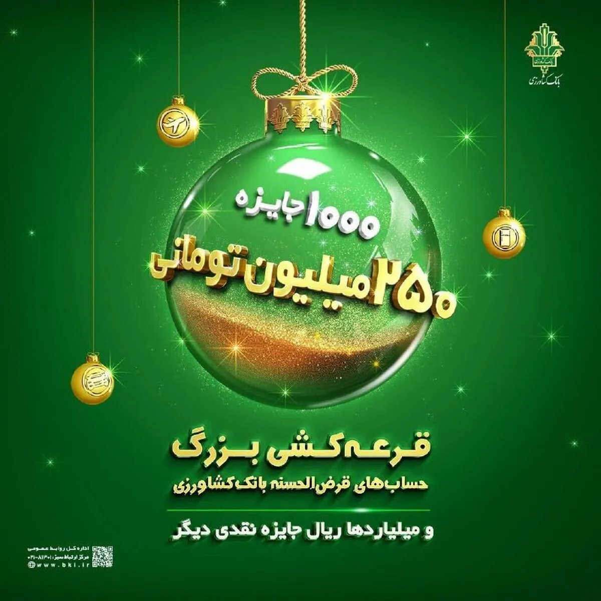 ۱۰۰۰جایزه ۲۵۰میلیون تومانی و میلیاردها ریال جوایز نقدی دیگر بانک کشاورزی