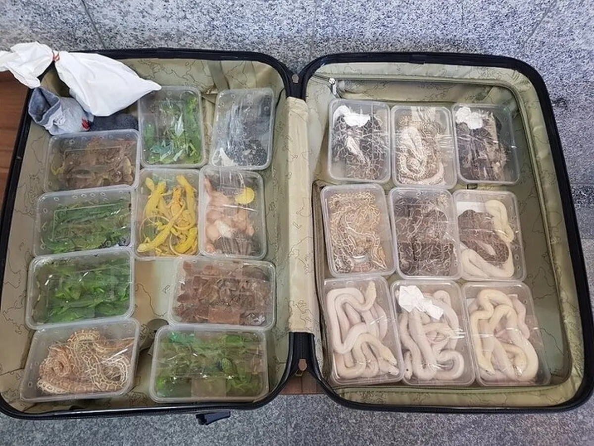 فرمانده یگانهای انتظامی و حفاظتی فراجا افزود: مأموران پس از بررسی و بازگشایی چمدانها، تعداد ۱۲۰ خزنده، از جمله ۳۱ عدد مار برمس پیتون،۵۹ عدد مارمولک ایگوانا، ۳۰ عدد لاک پشت سوئدی، کشف و ضبط کردند.