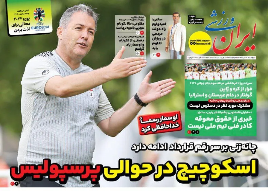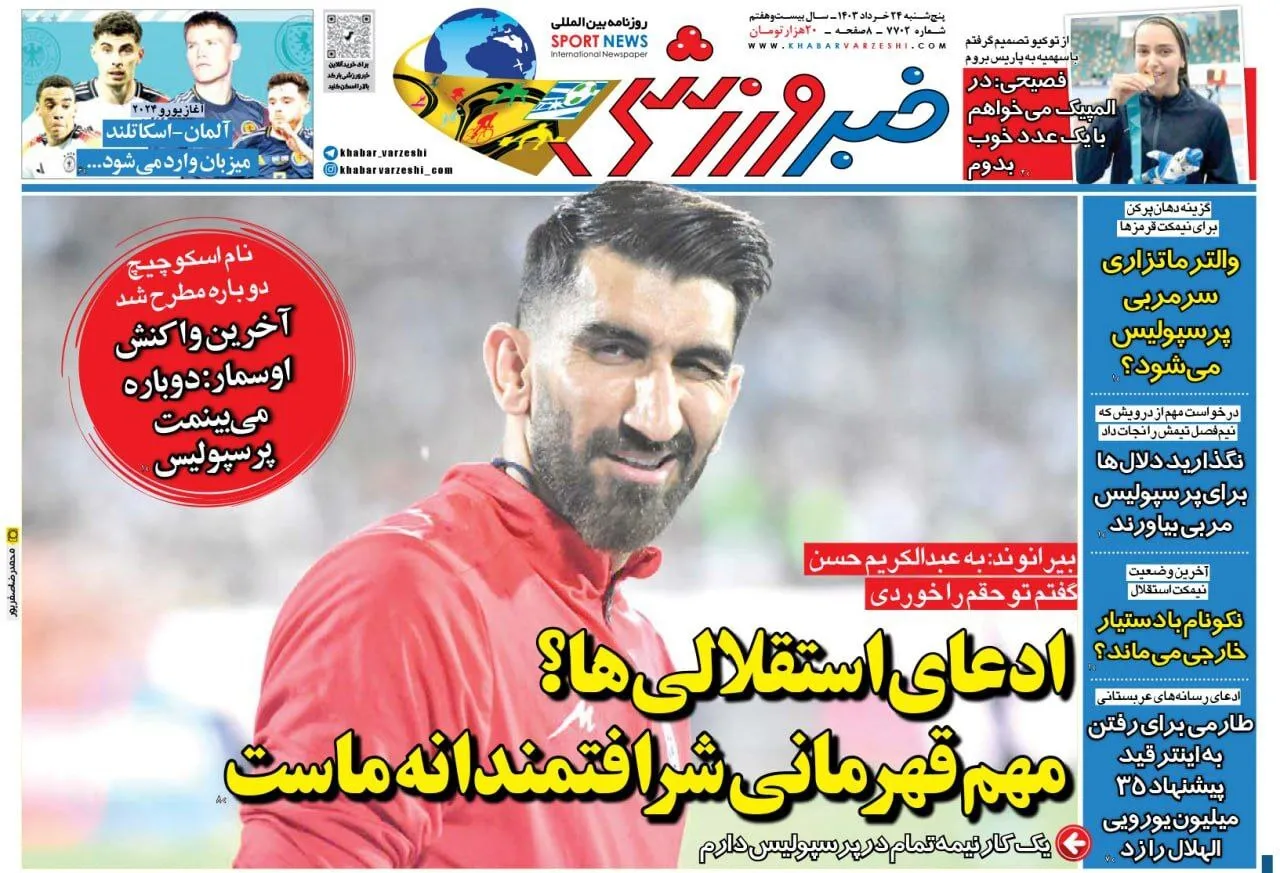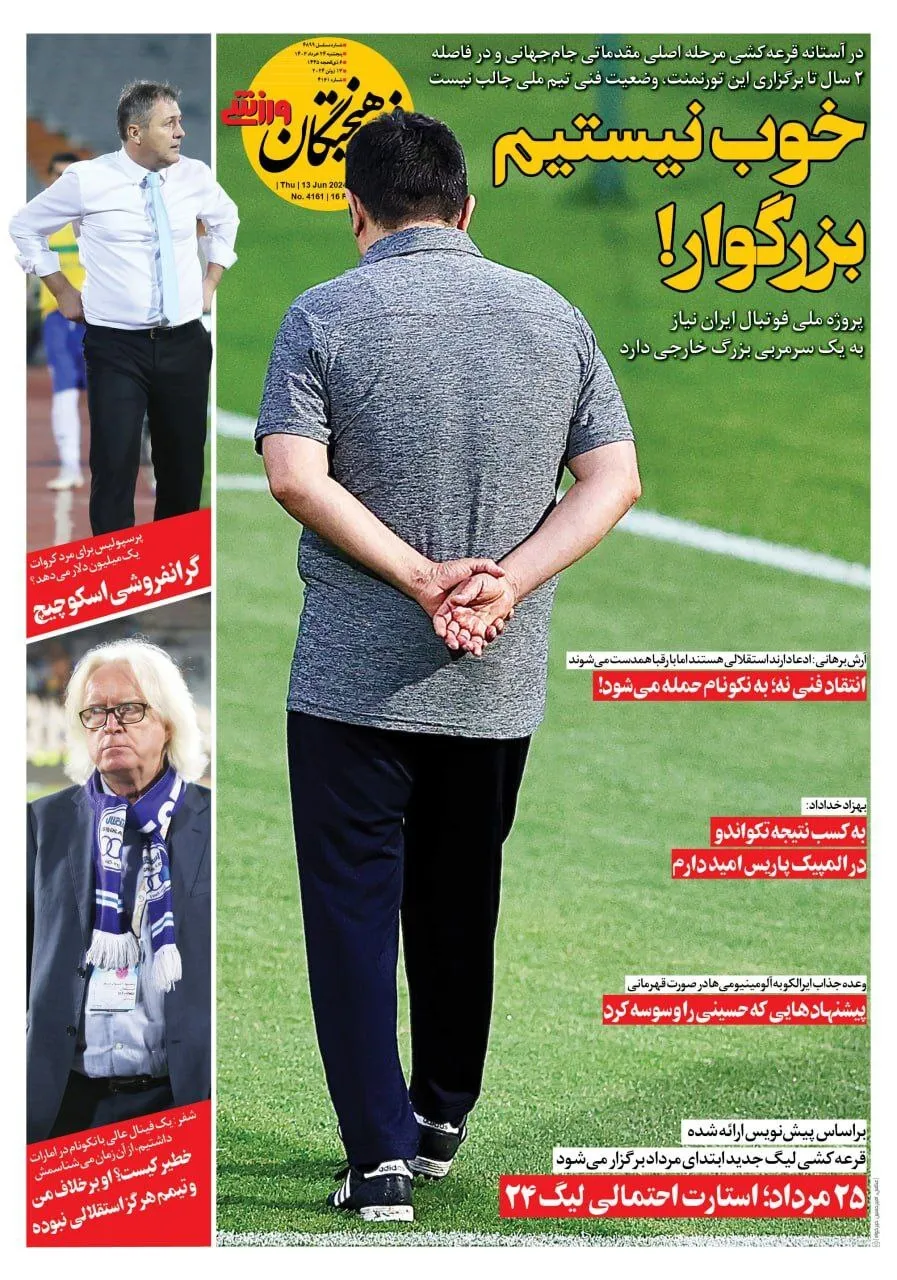 روزنامههای ورزشی پنجشنبه ۲۴ خرداد ۱۴۰۳