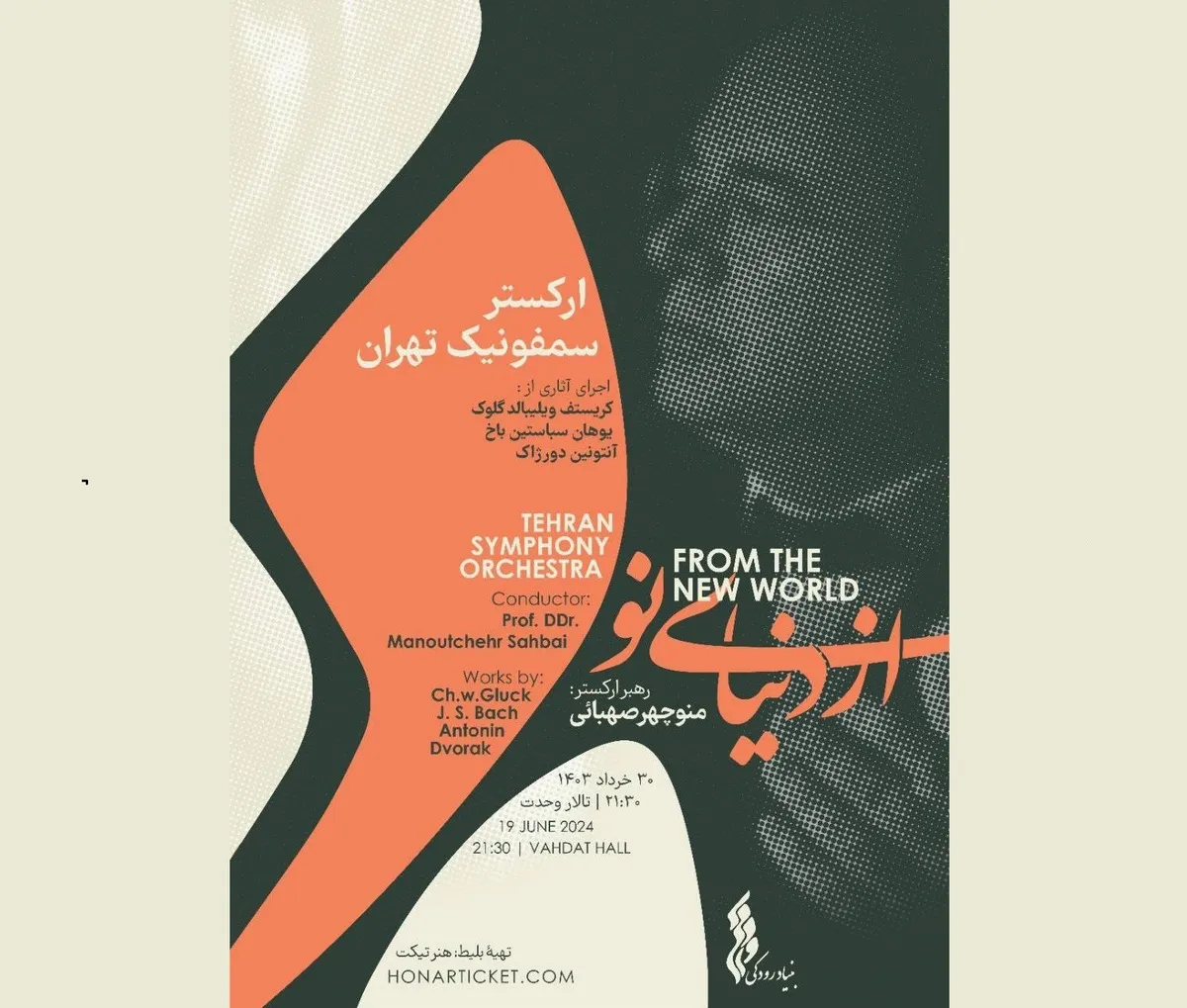 به گزارش گروه فرهنگ و جامعه خبرگزاری علم و فناوری آنا، کنسرت ارکستر سمفونیک تهران به رهبری منوچهر صهبائی با عنوان «از دنیای نو» شامگاه چهارشنبه ۳۰ خرداد، ساعت ۲۱:۳۰ در تالار وحدت برگزار میشود.