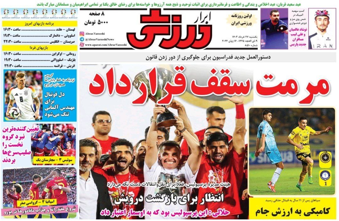 روزنامه های ورزشی یکشنبه 27 خرداد 1403