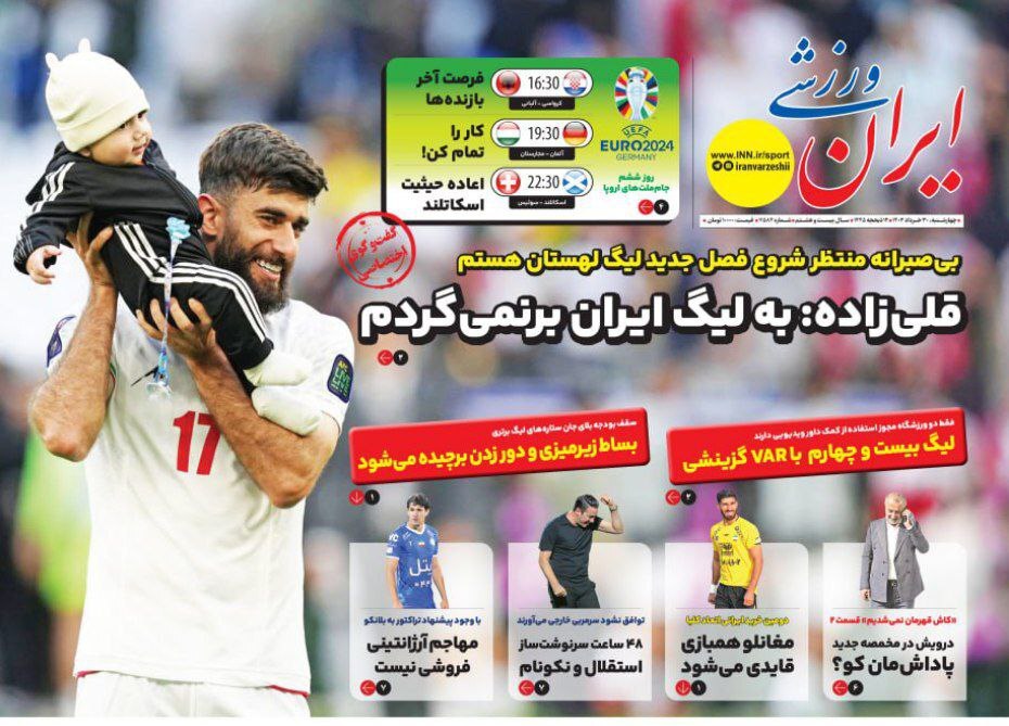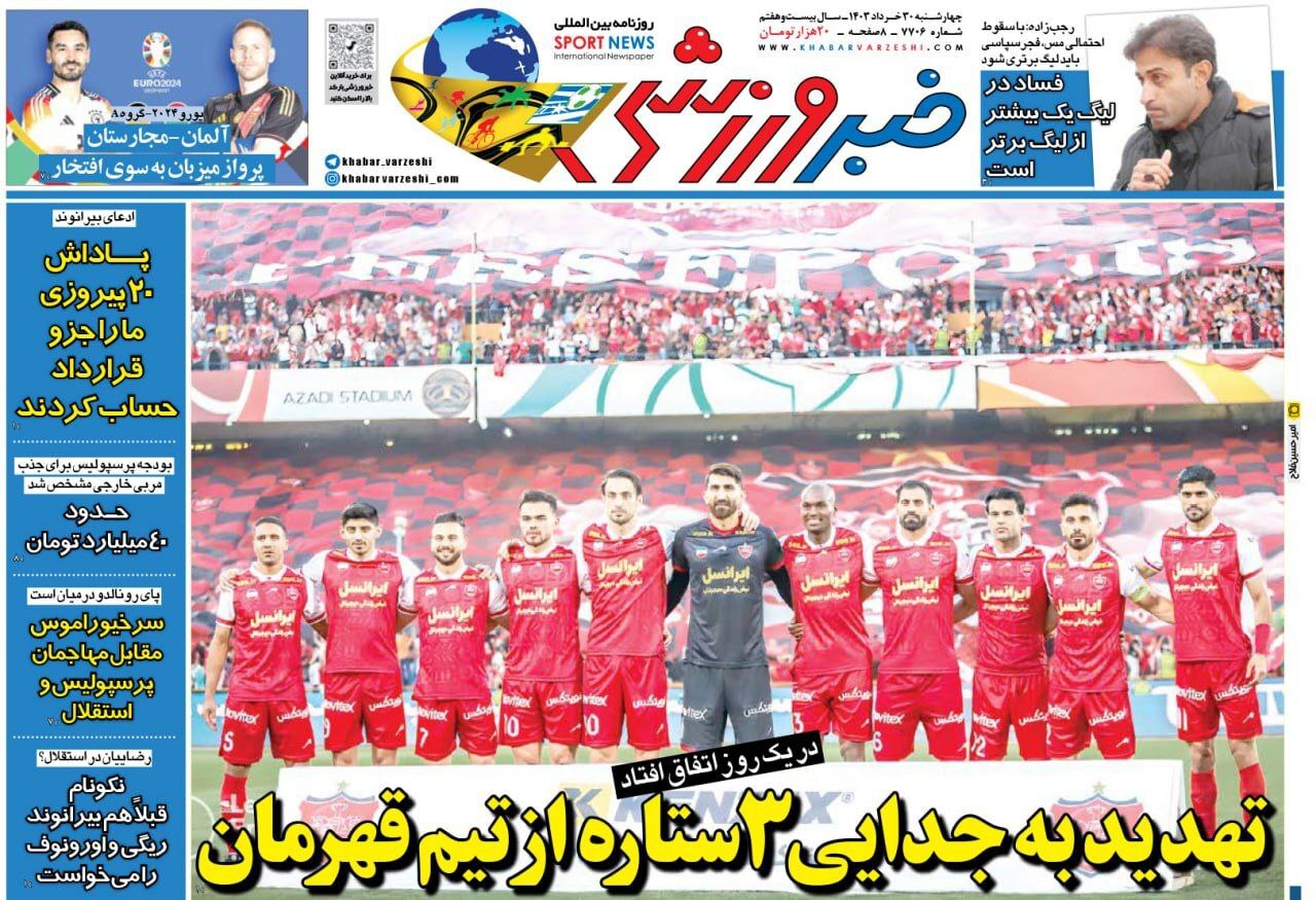 روزنامههای ورزشی چهارشنبه ۳۰ خرداد ۱۴۰۳