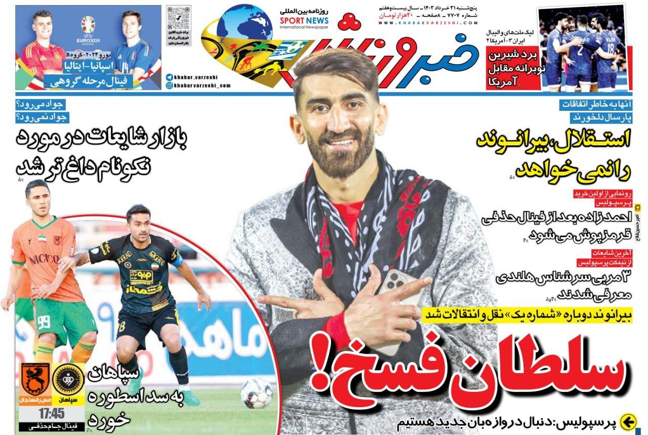 روزنامههای ورزشی پنجشنبه ۳۱ خرداد ۱۴۰۳