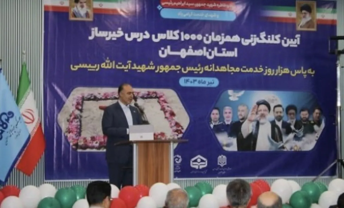 رئیس مجمع خیرین مدرسهساز استان اصفهان گفت: شنیدن صدای خیرین نکته مثبت و پیام مردمیبودن دولت بوده است؛ بهازای ۲۵ سال تأسیس مجمع خیرین استان اصفهان بهصورت میانگین روزانه یک کلاس درس افتتاح شده که این آمار در دو سال اخیر روزانه ۳ کلاس درس بوده است و این ۱۰۰۰ کلاس درس نیز به این آمار اضافه خواهد شد.