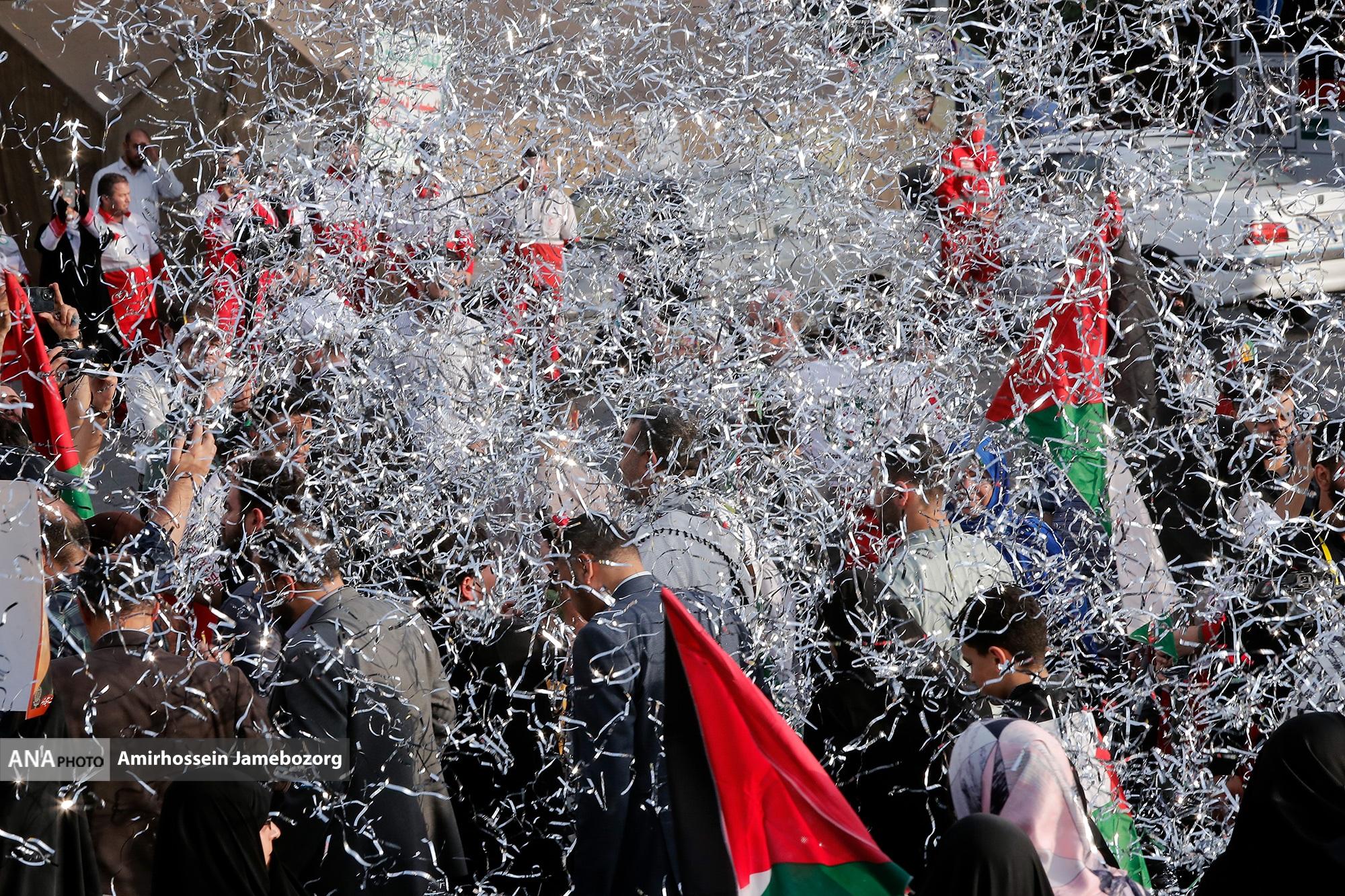 مراسم استقبال و تکریم خانواده‌های شهیدان کربلای غزه بعدازظهر امروز با استقبال عموم مردم در میدان فلسطین برگزار شد.