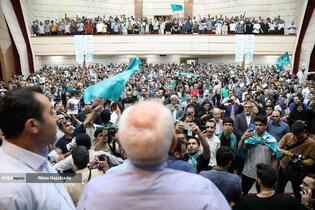 گردهمایی هواداران مسعود پزشکیان نامزد چهاردهمین دوره انتخابات ریاست جمهوری با سخنرانی محمدجواد ظریف در مشهد برگزار شد.