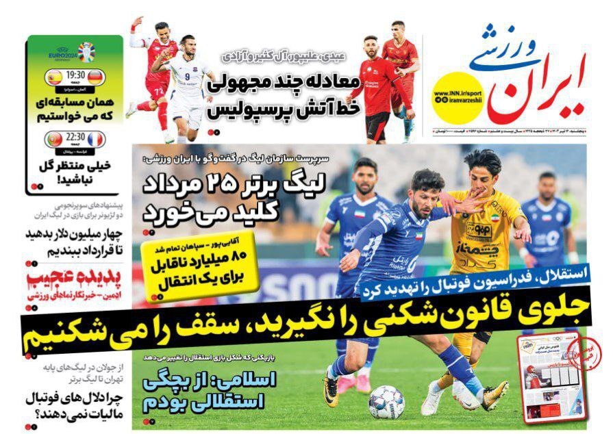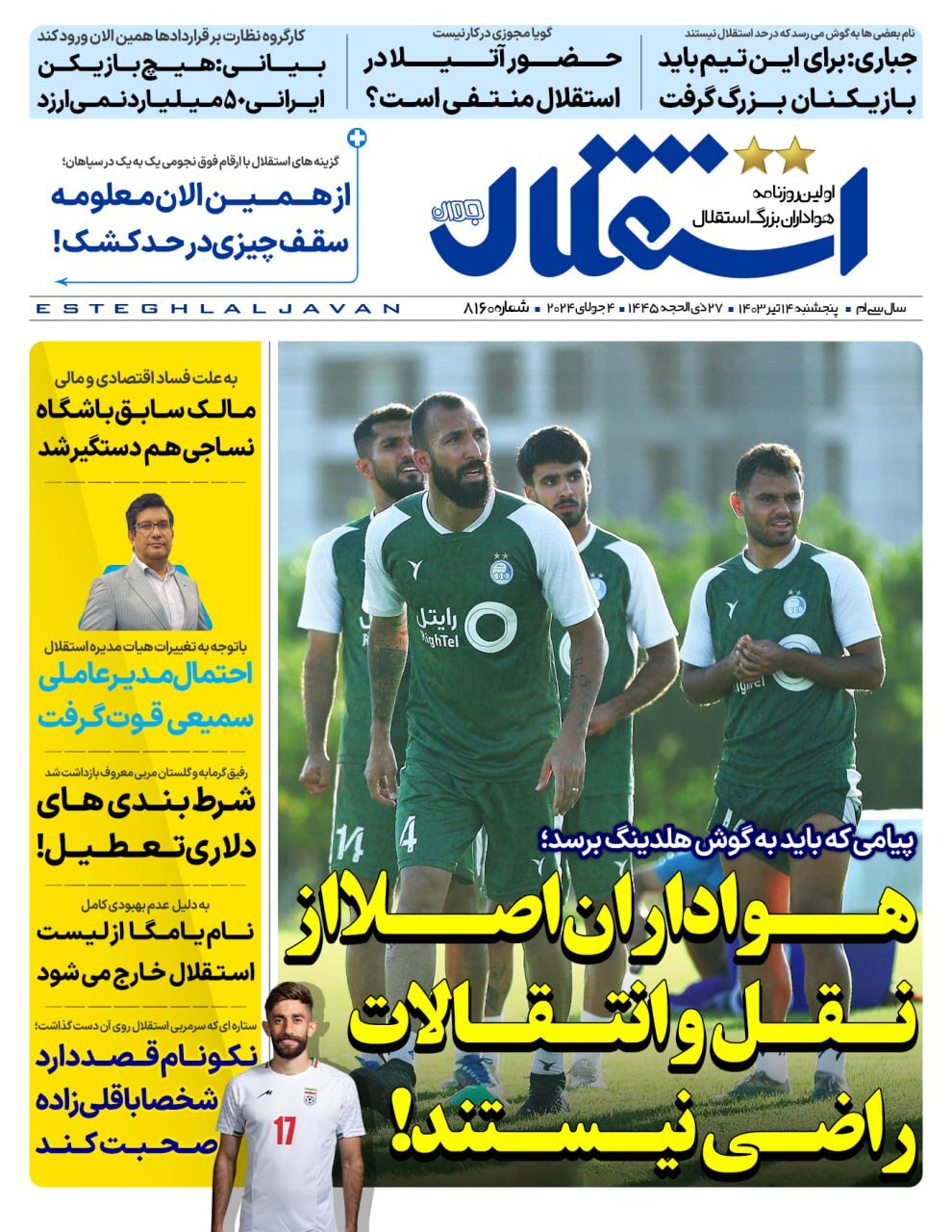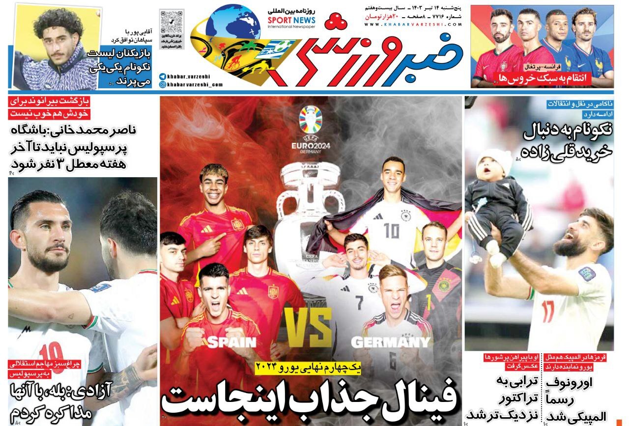 روزنامههای ورزشی پنجشنبه ۱۴ تیر ۱۴۰۳