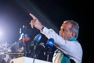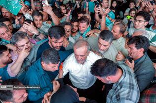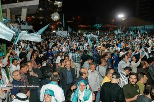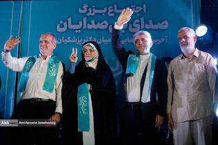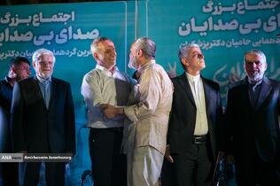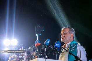 گردهمایی انتخاباتی مسعود پزشکیان کاندیدای چهاردهمین دوره انتخابات ریاست جمهوری چهارشنبه ۱۳ تیرماه ۱۴۰۳ با حضور جمعی از حامیان وی در ورزشگاه حیدرنیا تهران برگزار شد.