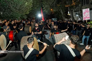 آئین عزاداری حسینی در شب سوم محرم با حرکت دسته‌های عزاداری در محله منیریه تهران برگزار شد.