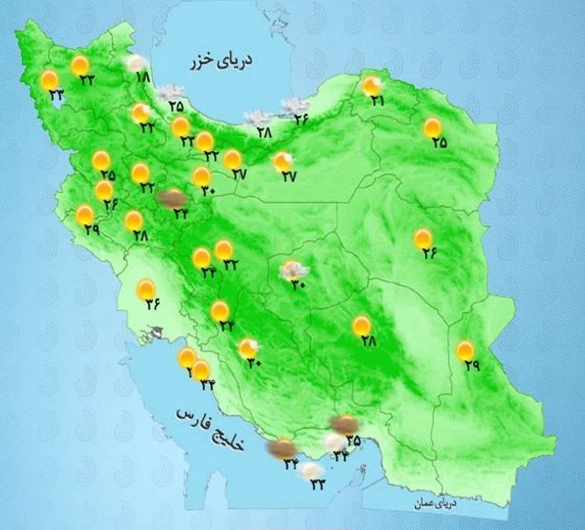 همچنین امروز در ساعات بعدازظهر و اوایل شب شرایط برای رشد ابر و رگبار و رعدوبرق و وزش باد در جنوب شرق فارس، ارتفاعات جنوبی سیستان و بلوچستان، ارتفاعات کرمان و ارتفاعات هرمزگان فراهم است.