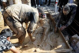همزمان با عاشورای حسینی(ع) آئین سنتی گِل مالی و عزاداری لرستانیهای مقیم تهران در بلوار فردوس برگزار شد.