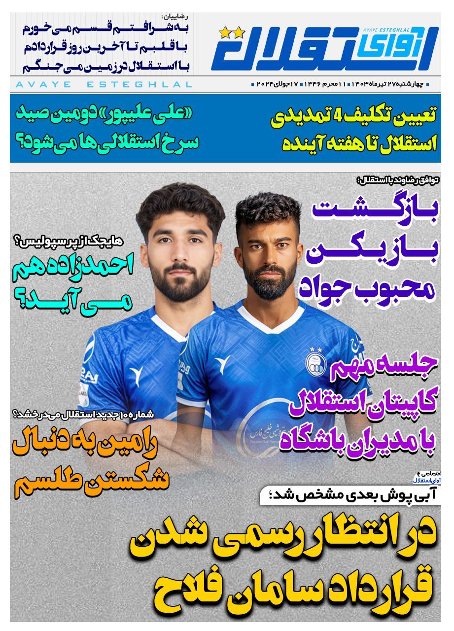 روزنامههای ورزشی چهارشنبه 27 تیر ۱۴۰۳