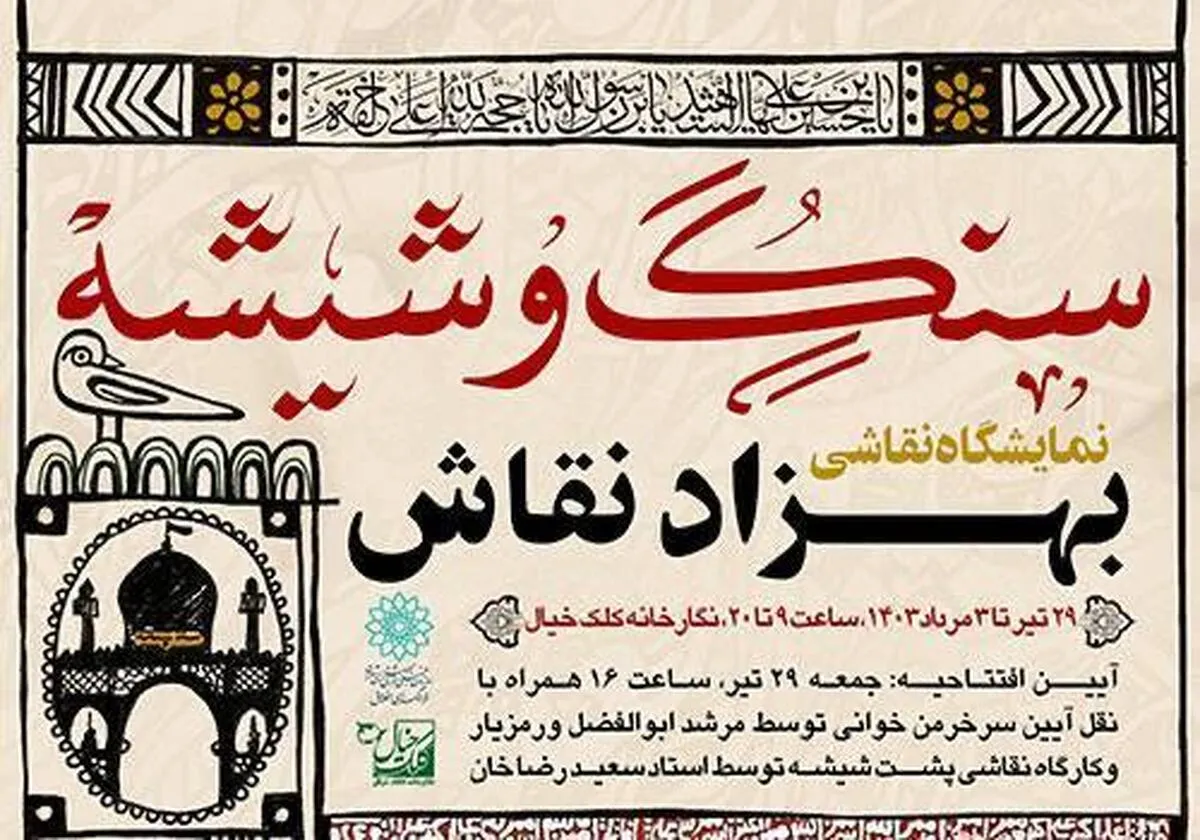 همزمان با دهه دوم ماه محرم نمایشگاه انفرادی نقاشی با عنوان «سنگ و شیشه» از ۲۹ تیرماه سال جاری در نگارخانه کلک خیال برگزار میشود.