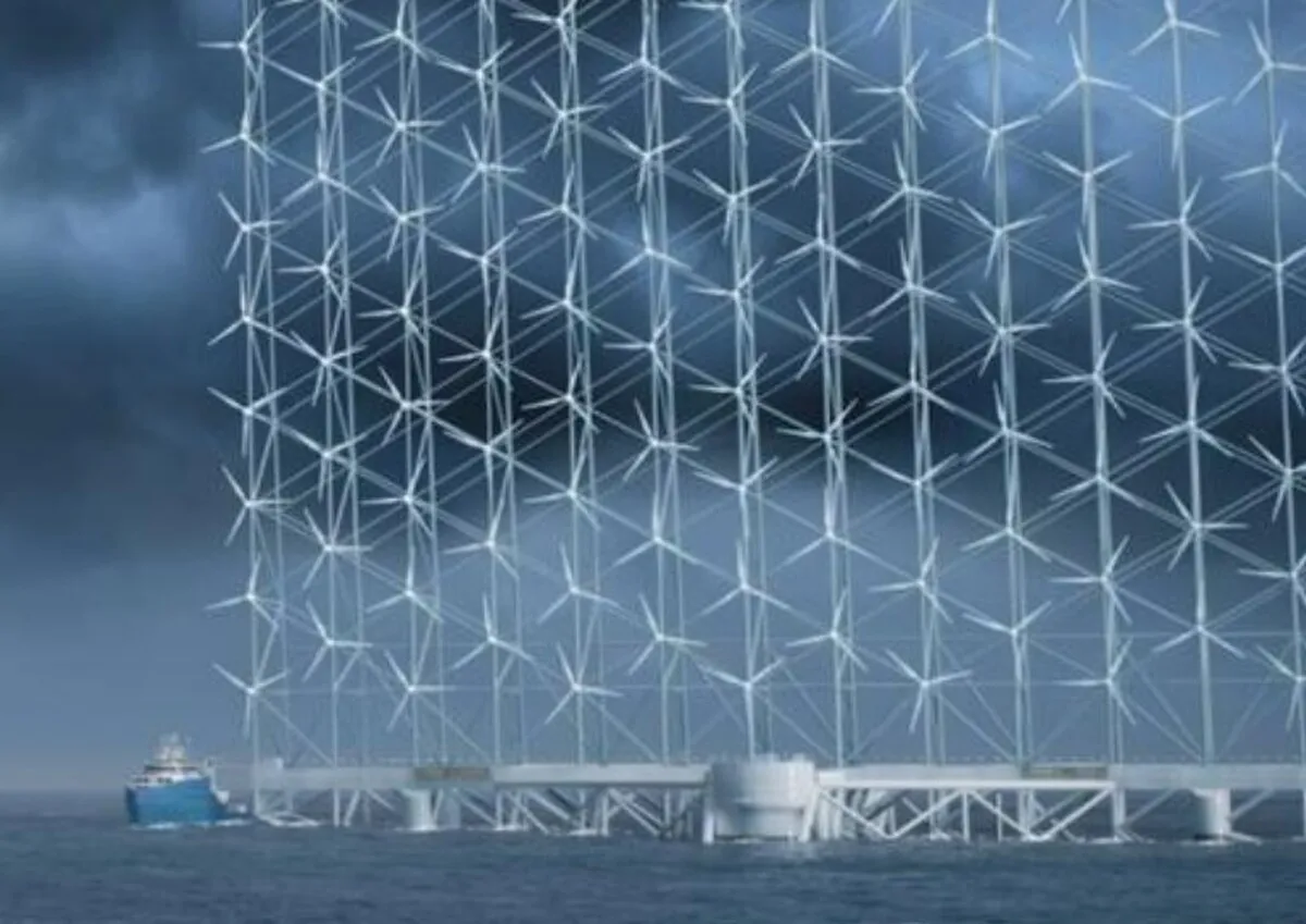 طراحی منحصر به فرد خوشههای توربین بادی مانند یک «دیوار شناور بادی» به نظر میرسد.