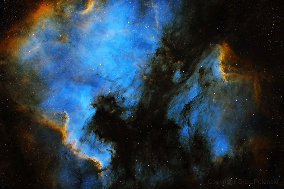 عکاس این تصویر، گِرِگ پولانسکی (Greg Polanski) در مورد این تصویر میگوید: «من تصویر خود را از سحابیNGC7000 و سحابی پلیکان IC5070 ارسال میکنم. برای این تصویر از فیلترهای SHO استفاده کردم. من داده ها را در مجموع 16 ساعت و 50 دقیقه جمع آوری کردم. تمام تصویربرداری از حیاط خلوت من در کاناتا، انتاریو انجام شد. چندین شب طول کشید تا داده های جمع آوری شود. برای پردازش داده ها از نرم افزار Sequence Generator Pro (SGP) و Pleiades Astrophoto PixInsight استفاده کردم.»