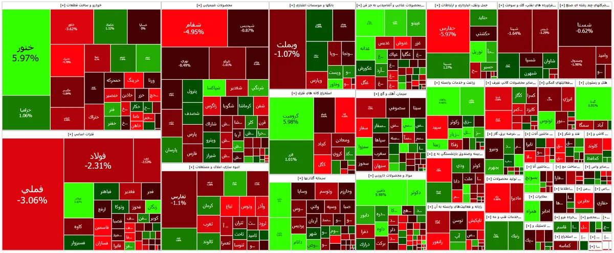 شاخص کل بورس تهران در پایان معاملات امروز (یکشنبه، هفتم مردادماه) با افت ۱۴ هزار و ۳۵۱ واحدی در ارتفاع ۲ میلیون و ۱۶۰ هزار واحد قرار گرفت.
