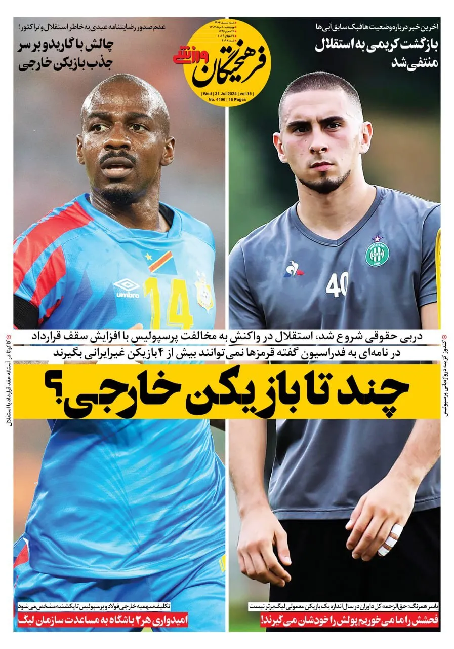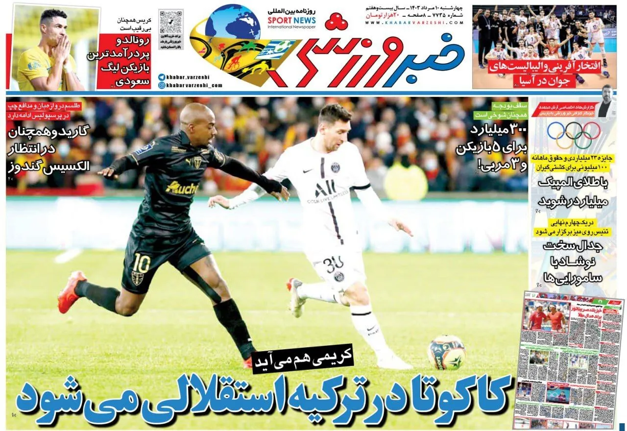 روزنامههای ورزشی چهارشنبه ۱۰ مرداد ۱۴۰۳